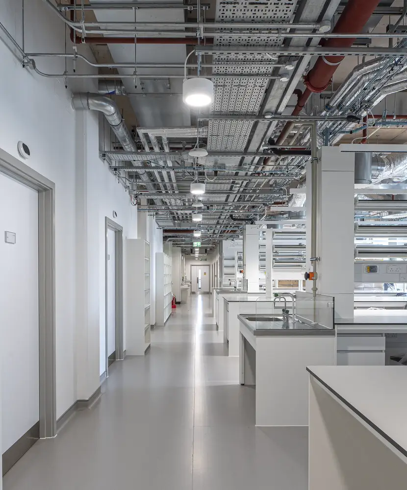 Rear-access luminaires are maintained from the void above so that the seal to the room is not disturbed. Sometimes a walk-on ceiling is installed so that all services can be maintained from above, and in this scenario load-bearing luminaires should be used.