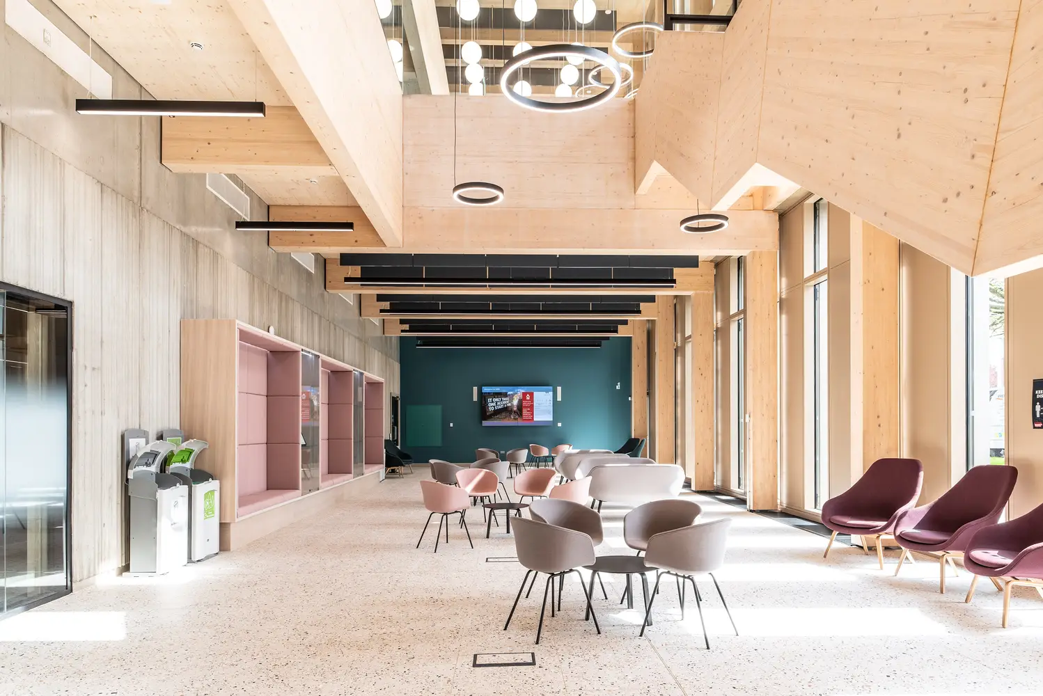 Circulation areas should enable people to find their way easily and safely through the building, even when they are unfamiliar with it. Corridors are used as social areas, for the display of student works and notices.