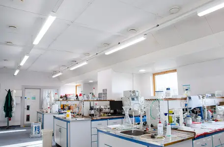 In some specialist higher education laboratories with high levels of dust or humidity, sealed luminaires such as the Cleanline should be considered.