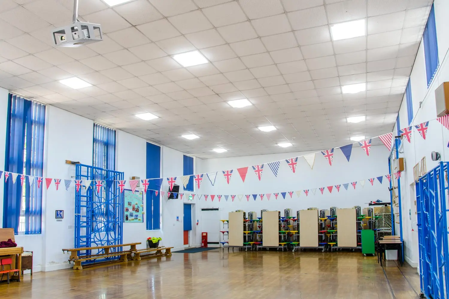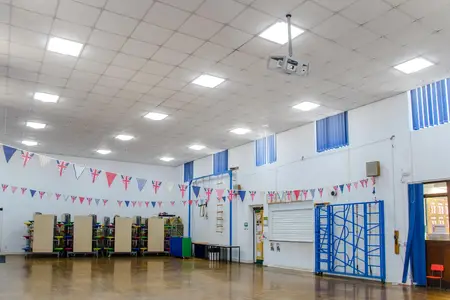 At primary schools, sport is often just one activity in a multi-function space used for daily assembly, concerts and presentations, so the lighting needs are less onerous.