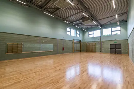 The choice of luminaire will be determined by the usage of the space. In primary school multi-function halls, surface or suspended luminaires, such as the Visio Sport may be suitable because the wide distribution provides good cylindrical illumination and illuminates the walls and ceiling creating a bright, welcoming environment. If a recessed luminaire is required, the SkyDome provides a similar distribution.