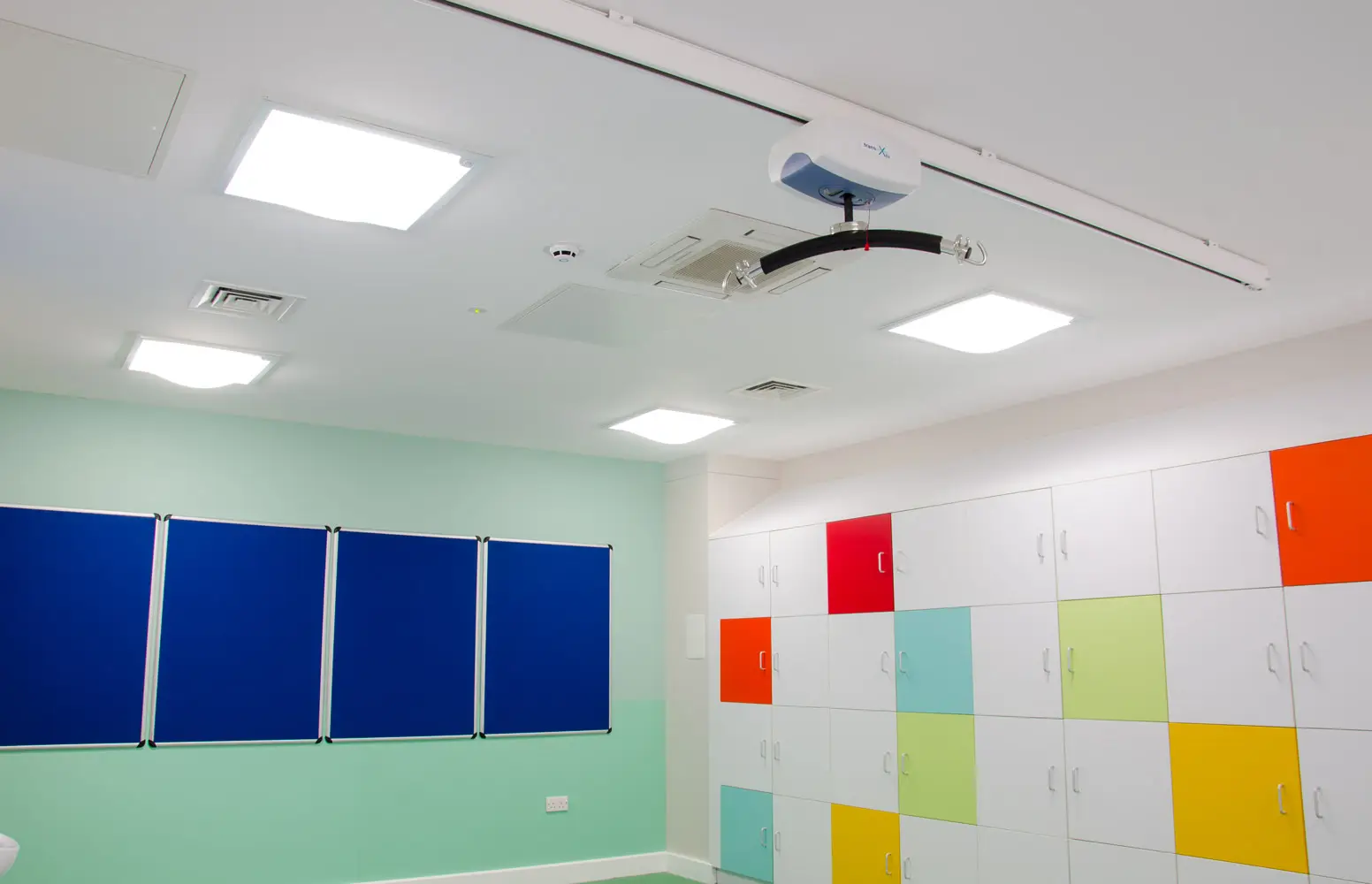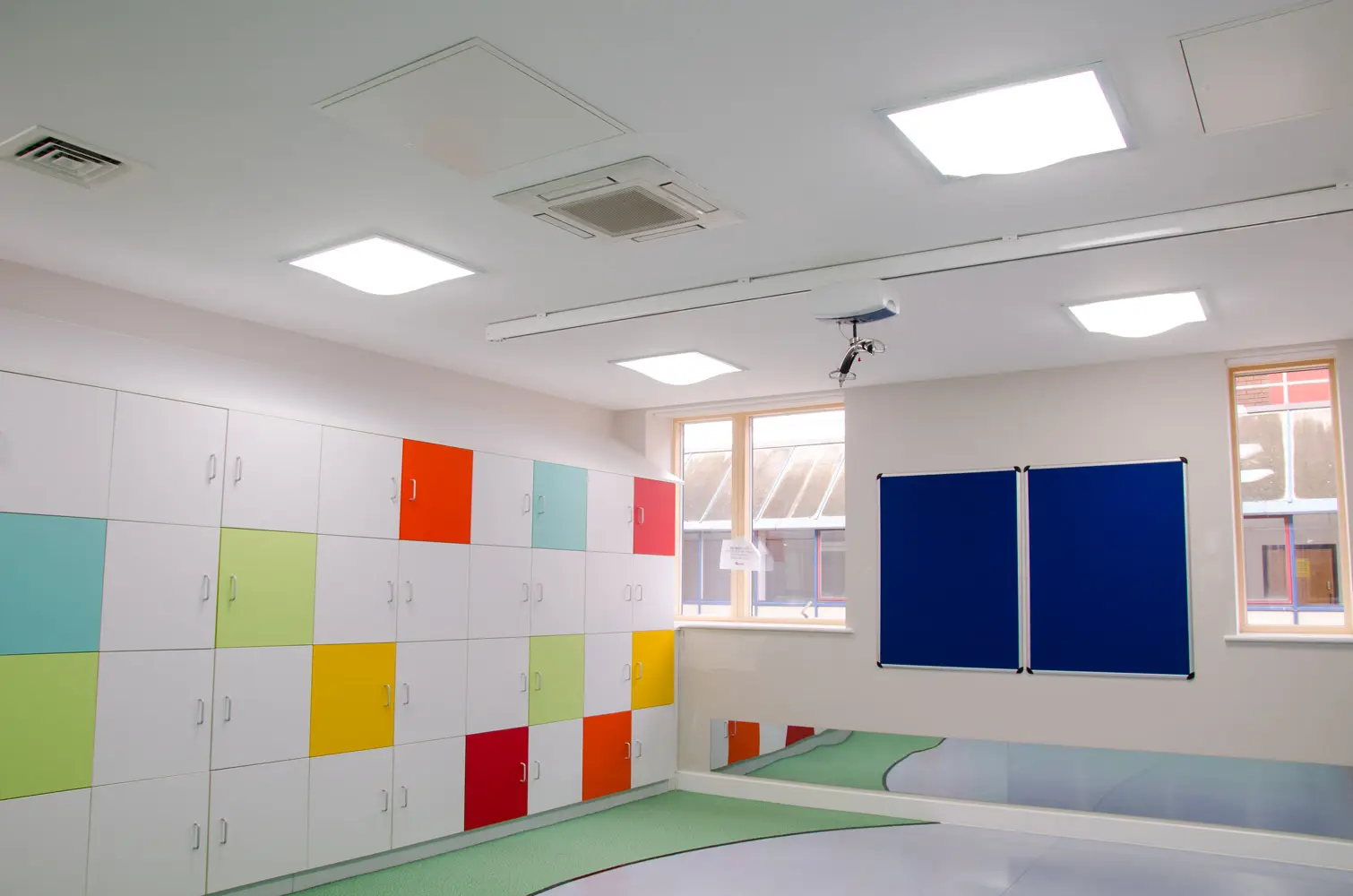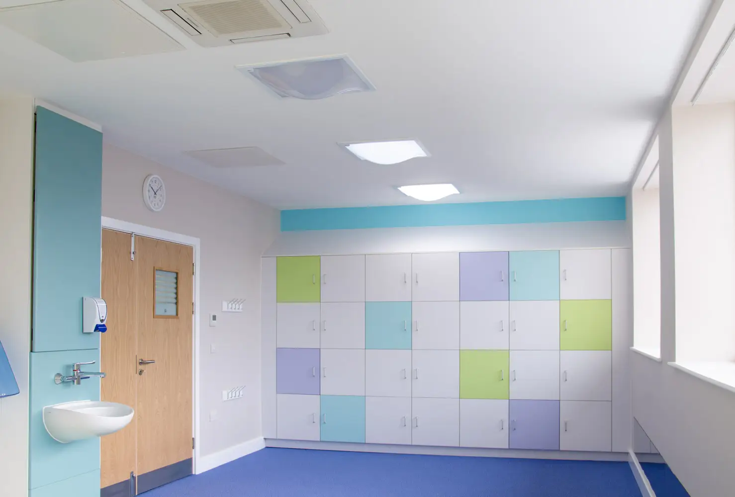Recessed luminaires with suitable IP ratings for shower rooms include the G3 (with suitable cover), R3 & R4 downlighters. SkyDome has been used in larger changing rooms. Suitable surface luminaires include the A-Line, Arcadian and the Clara 360.