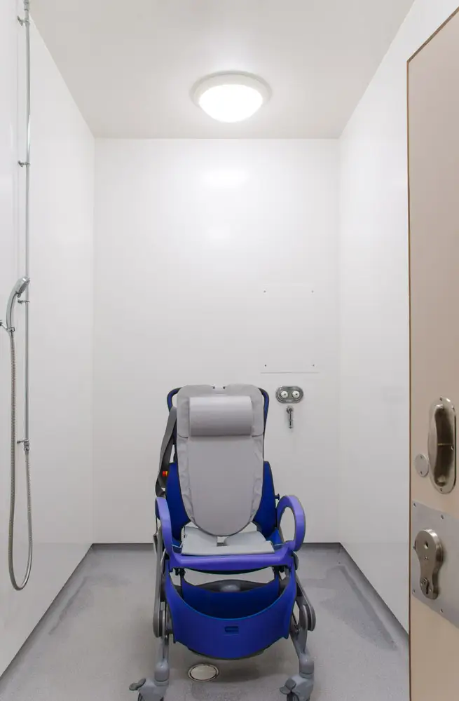 Lighting in changing rooms and toilets is mainly functional, and luminaires should have a suitable IP rating in shower rooms. Local lighting may be needed to illuminate mirrors.