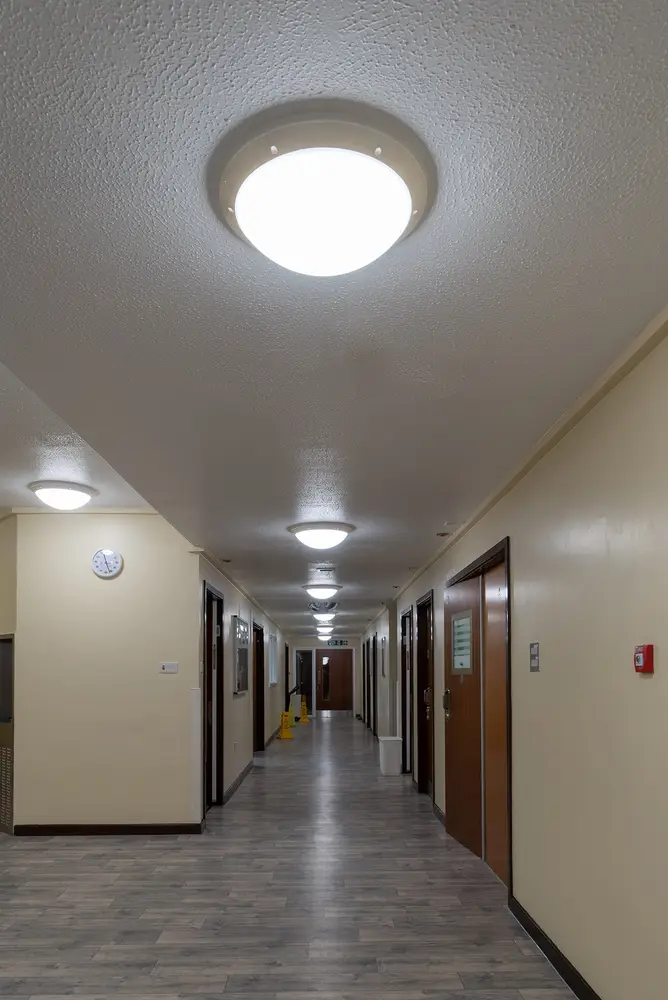 Mental Health premises often have comprehensive CCTV coverage. The placement of luminaires should be coordinated with the CCTV camera locations to ensure that glare from the luminaires does not impact CCTV operation and a suitably uniform illumination level is achieved.