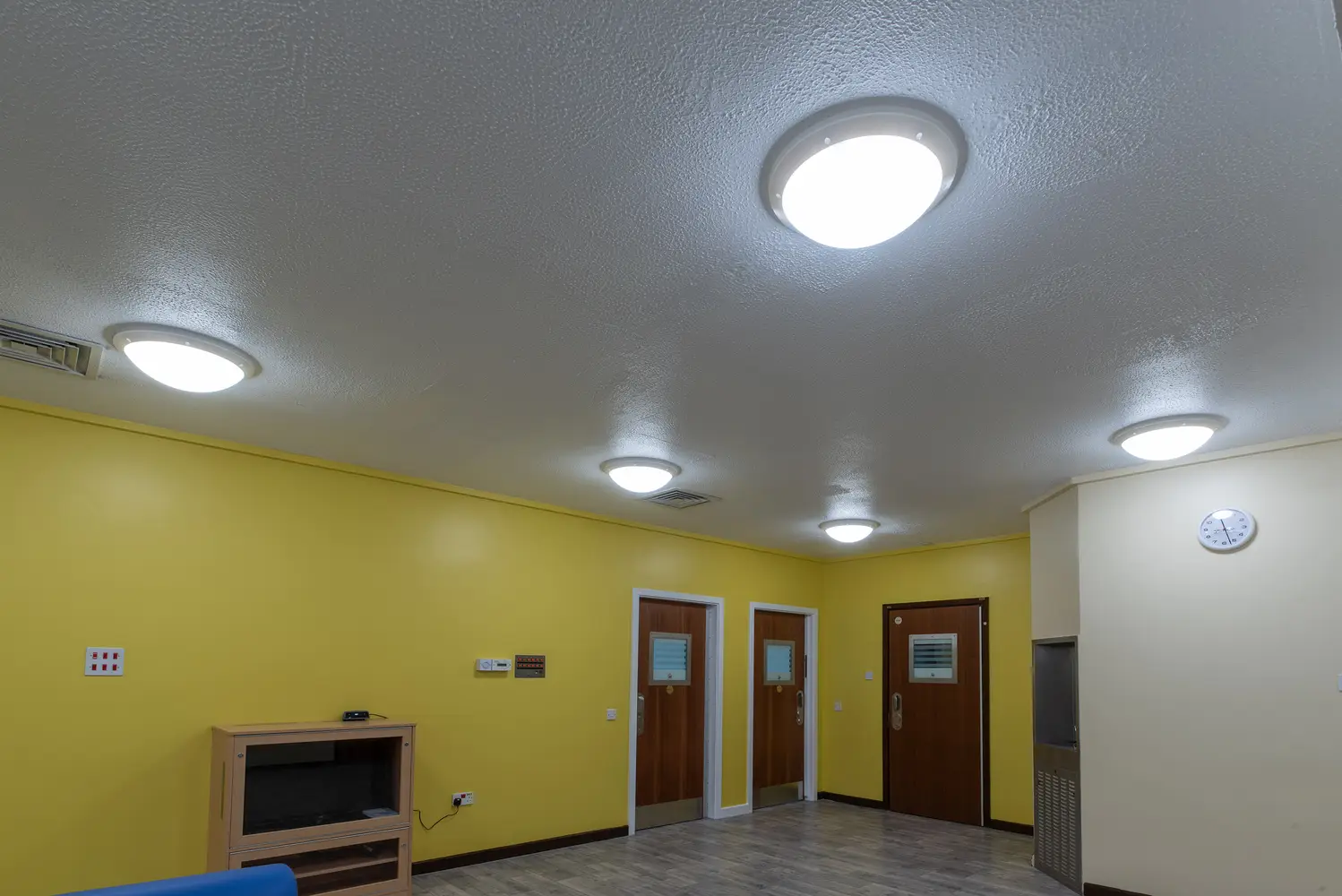 Surface or recessed luminaires should have an approved silicone gasket between the fitting and the ceiling to prevent them being used as ligature points. Healthcare environment luminaires need to be very robust, able to withstand repeated and sustained attacks, anti-ligature, easily maintained and capable of maintenance or replacement without affecting the building fabric.