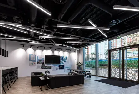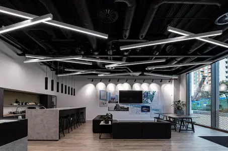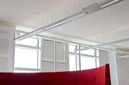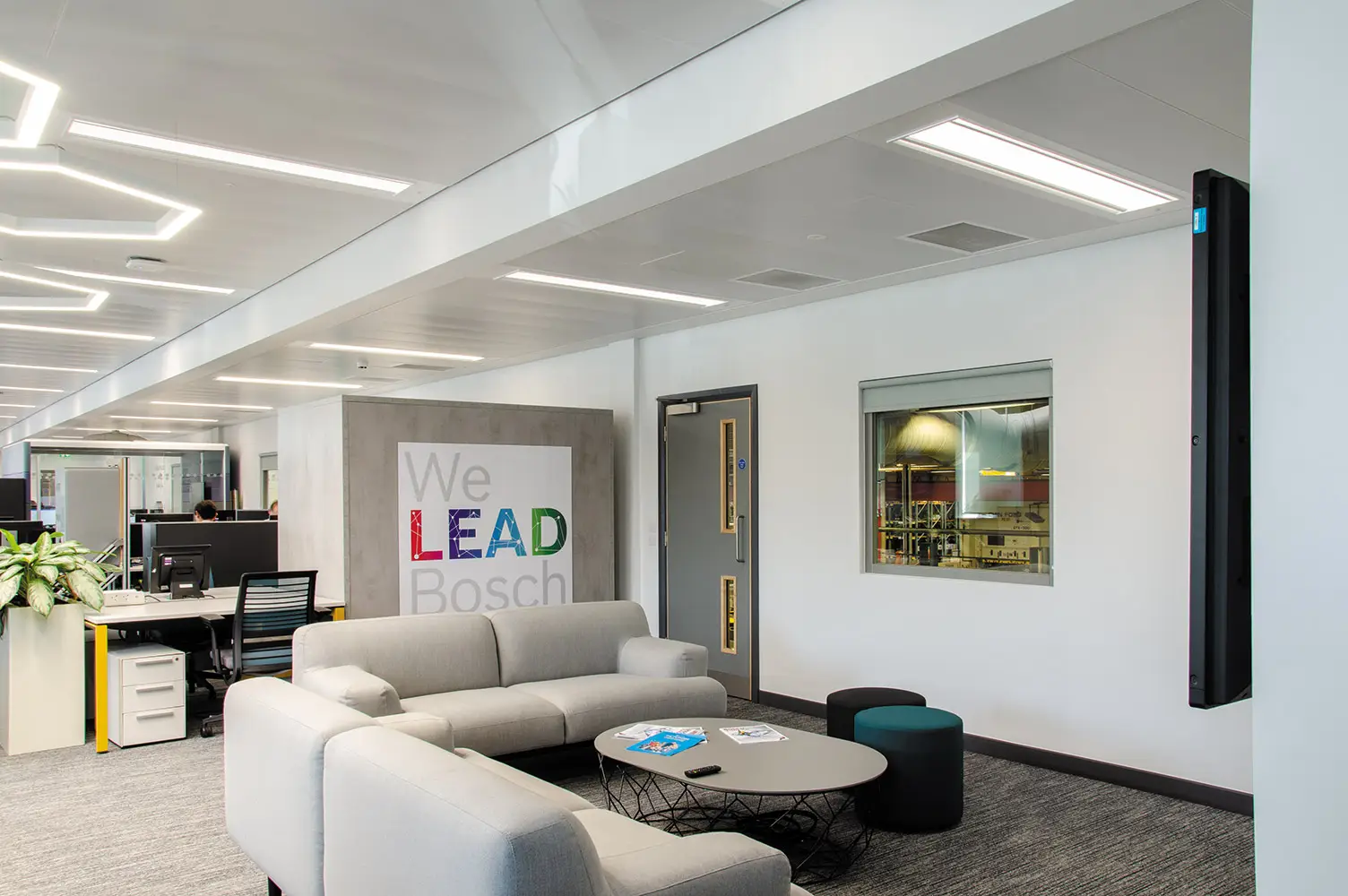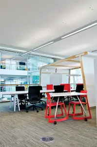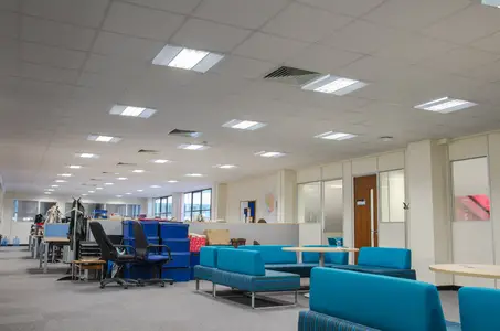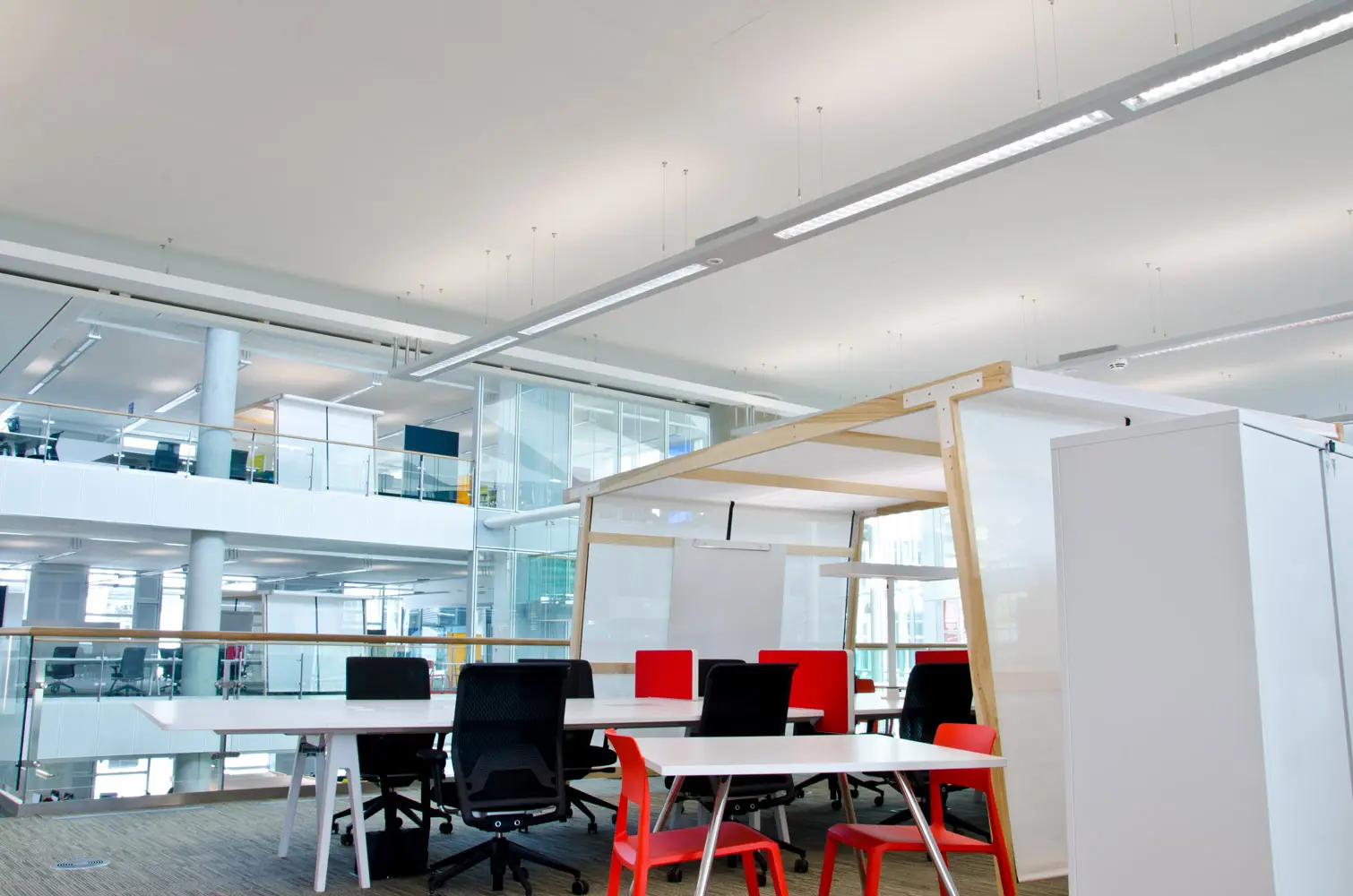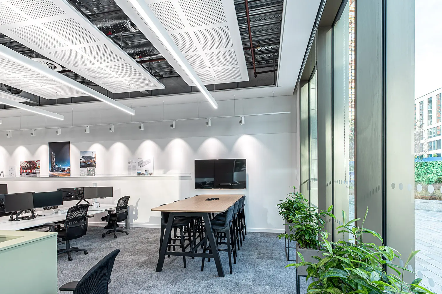 Breakout spaces usually have a relaxed, almost domestic ambience, and are often used for informal meetings. Illumination levels should be lower than the general office spaces, and using feature luminaires helps create a more relaxed atmosphere.