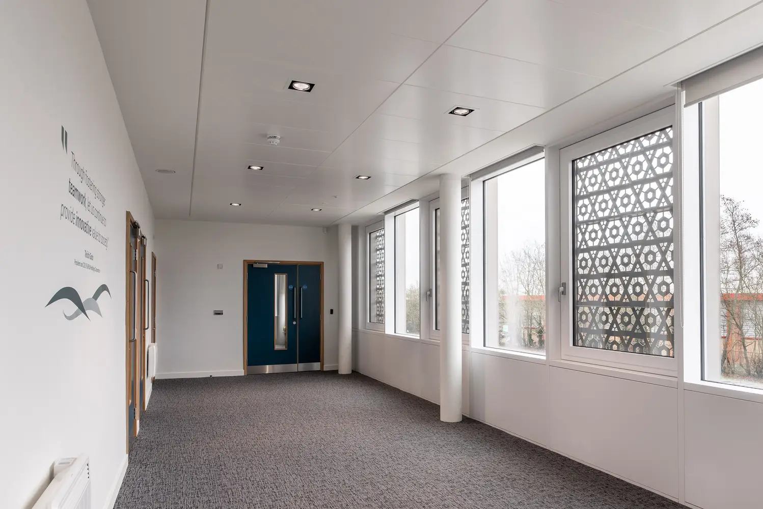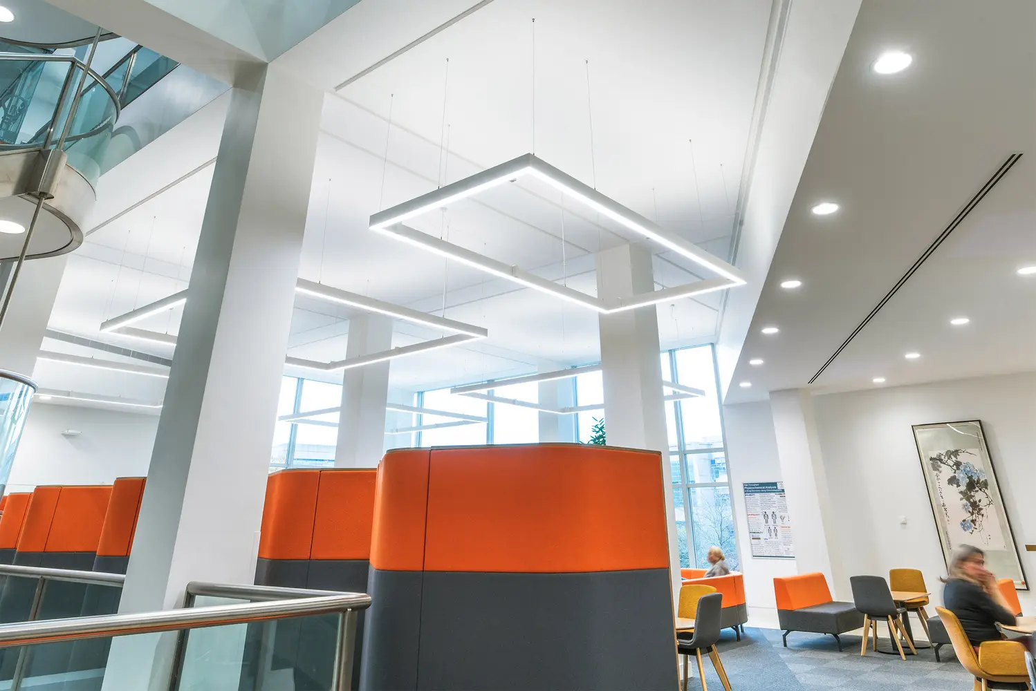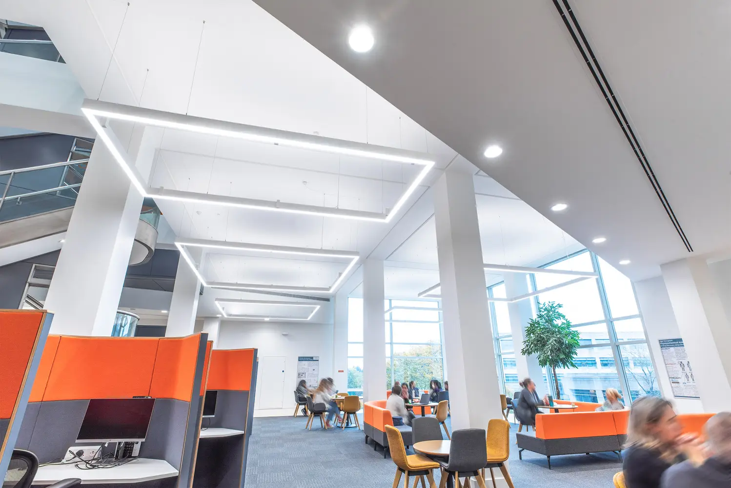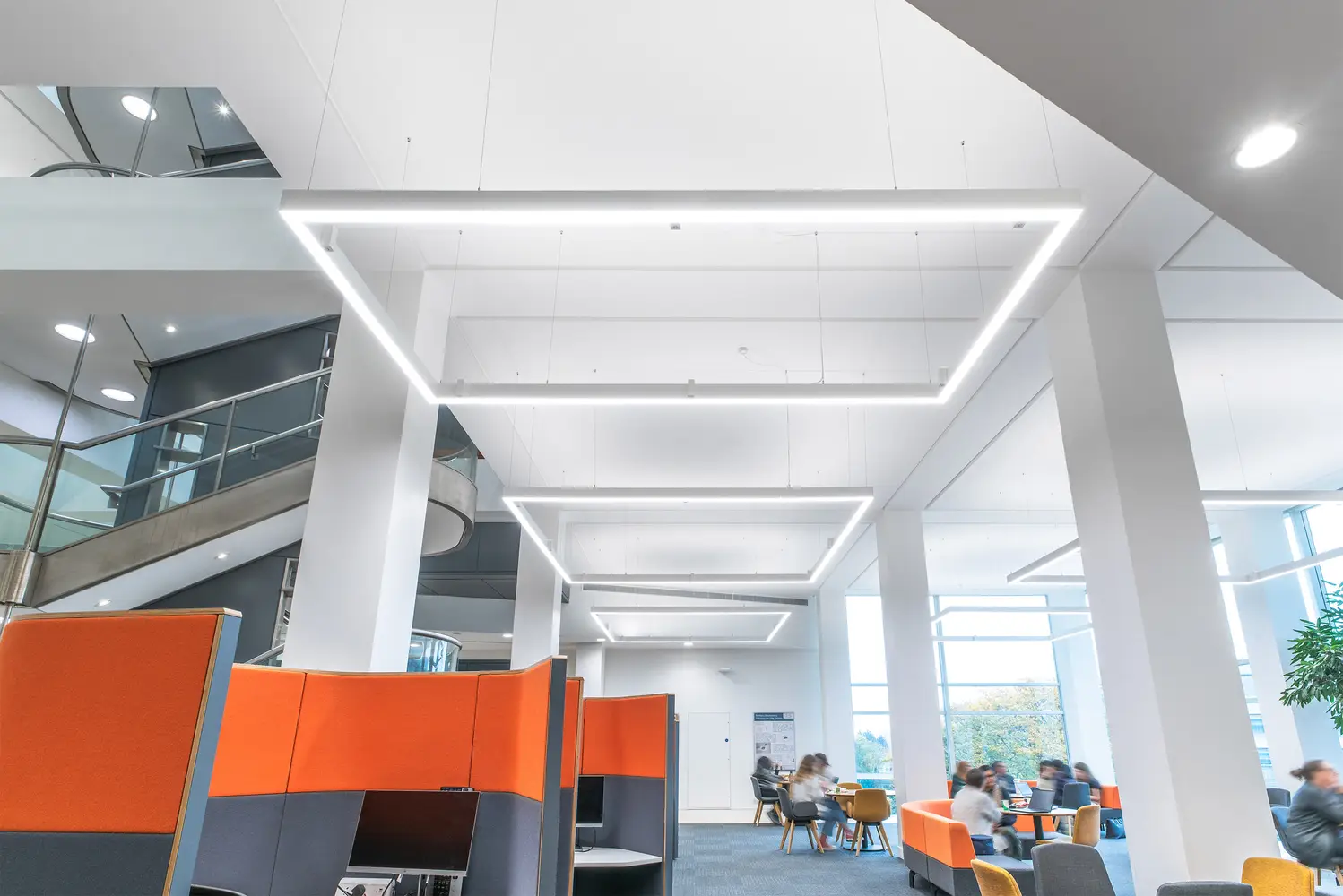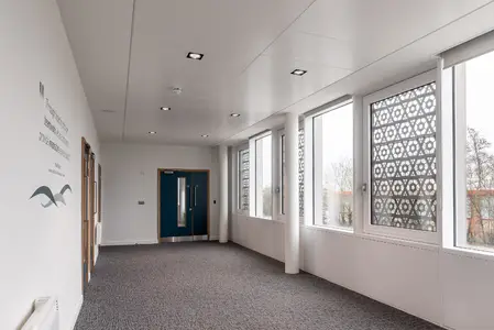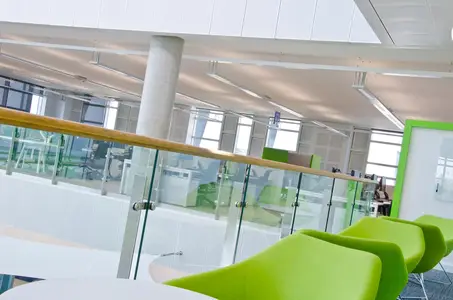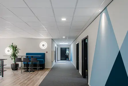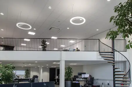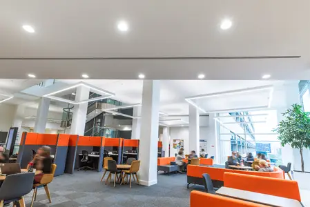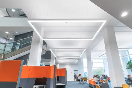Significant energy savings can be achieved in areas with good levels of daylight by using daylight dimming. Presence detectors can also ensure circulation spaces are not left illuminated when not being used.