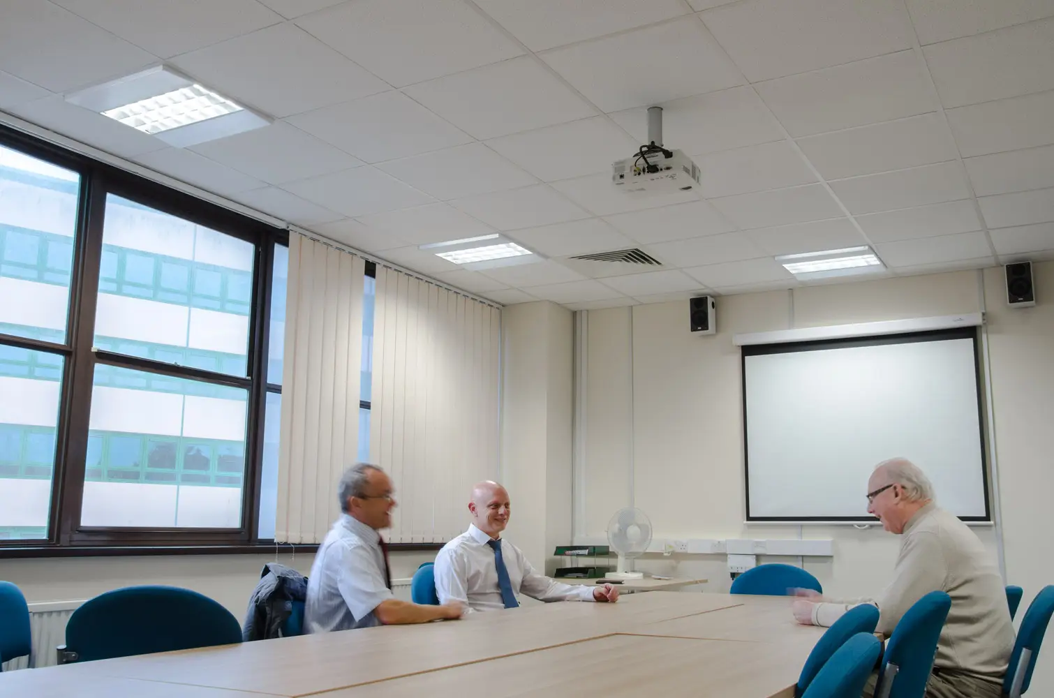 Rooms equipped with TVs & projector screens benefit from scene setting control which improves the visibility of the screen whilst allowing participants to read and take notes.