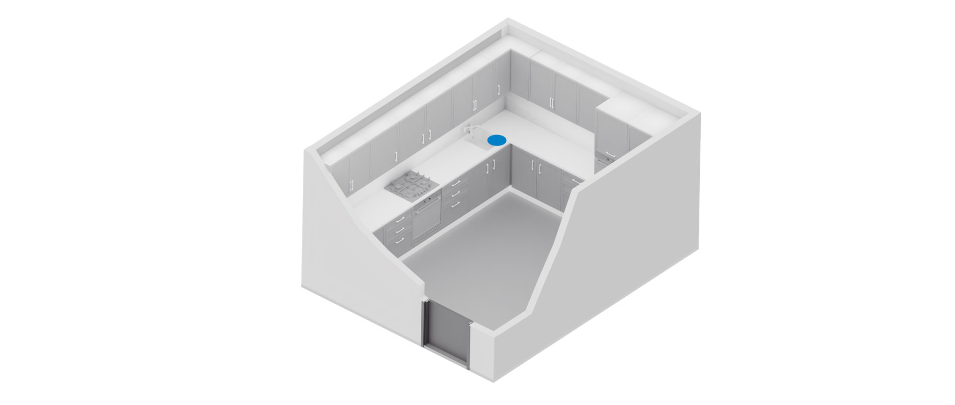 Kitchen areas requires low-glare, uniform illuminance, best provided by enclosed ceiling luminaires. Luminaires should be enclosed with a glass or polycarbonate cover designed to be easily removed for cleaning. The dining area is distinct from the kitchen and the lighting should reflect this, as well as being switched separately from the kitchen, decorative lighting on walls or ceiling create a pleasant atmosphere.