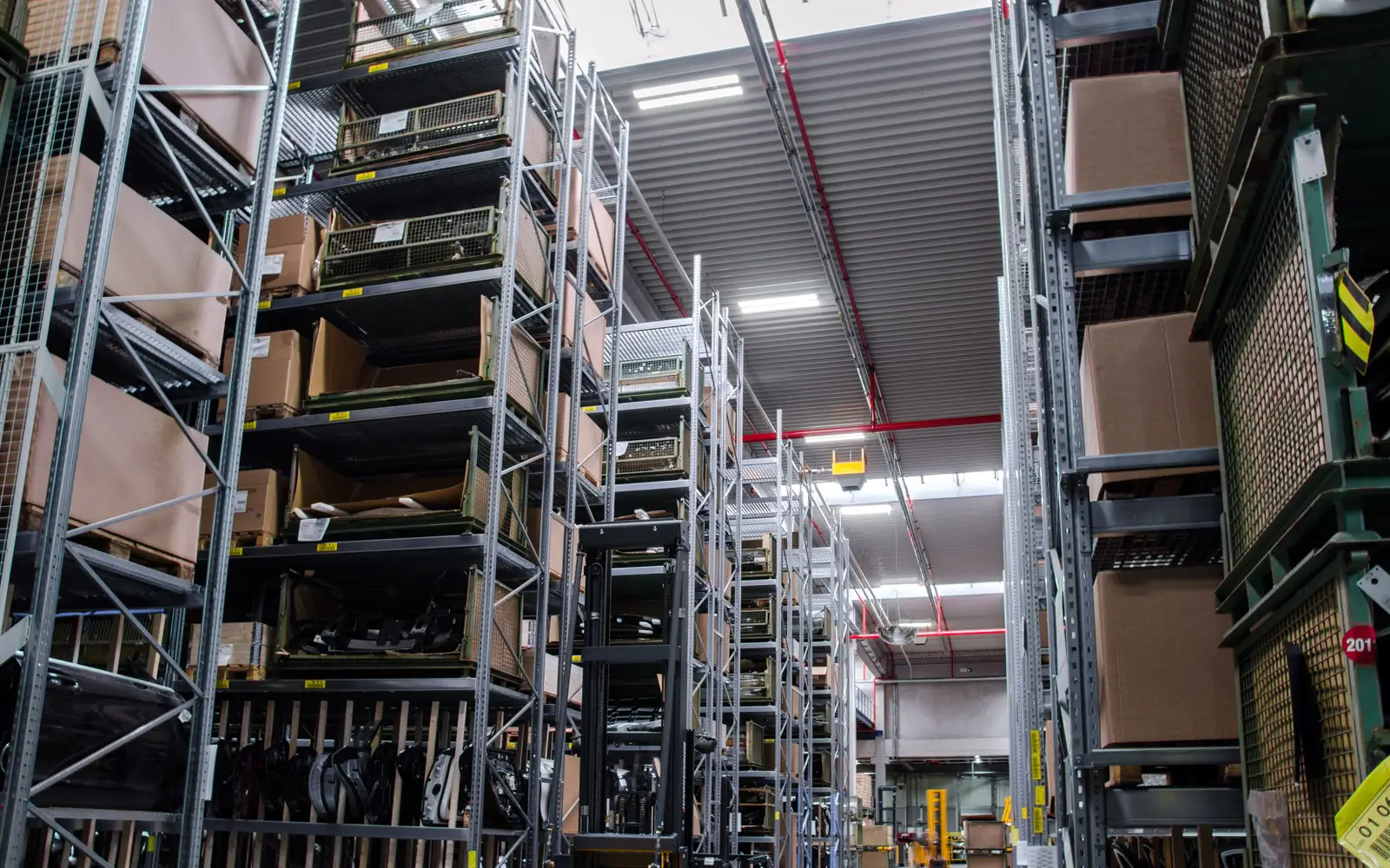 In areas with racking it is especially important to guarantee good levels of vertical illumination.