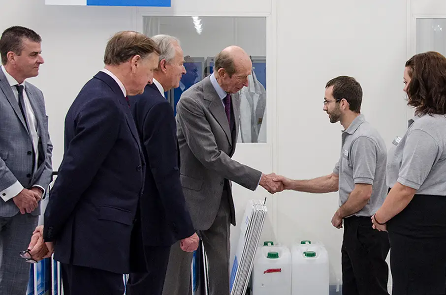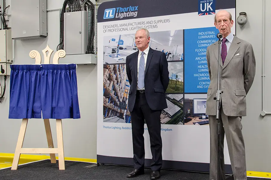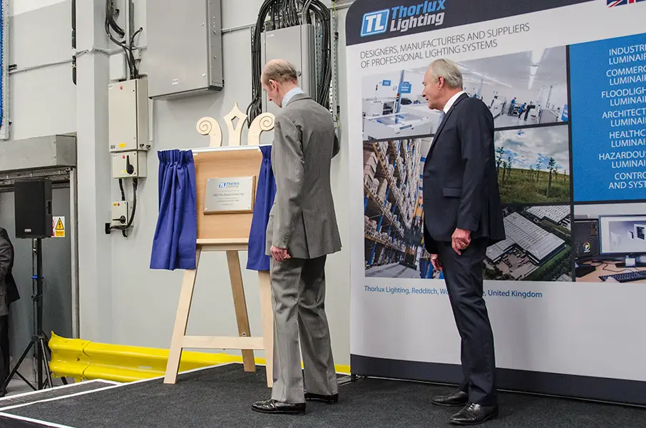 HRH The Duke of Kent KG visited Thorlux Lighting on 25th May 2017 to open the new luminaire assembly area. The Duke received a tour of the factory, met apprentices old and new, and unveiled a plaque to commemorate the occasion.