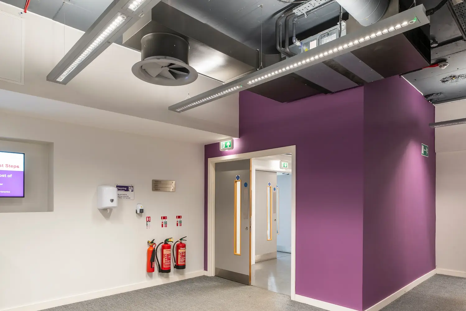 As a result, engineers fitted 657 luminaires with new Thorlux Light Line Retrofit kits. After removing the old louvres, lamps, and drivers, engineers clipped the drop-in retrofit kits directly into the existing luminaire chassis. This kit is a highly sustainable alternative to replacing the complete luminaire. Upgrading with Light Line Retrofit kits typically saves 68% embodied carbon and can halve operational carbon.