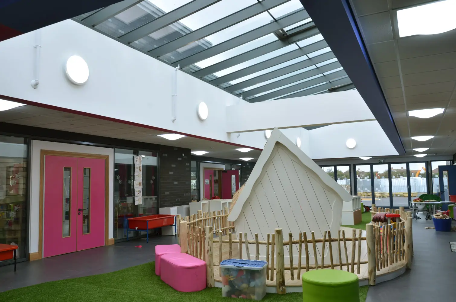 Awel y Môr Primary School is a new state of the art primary school for up to 334 pupils providing an exciting and innovative learning environment for the local community. The school includes a well-designed Foundation Phase and KS2 learning environment; a purpose built food preparation room, fitness studio, a 14 place Pupil Inclusion Centre, community learning rooms, and family conference/meeting rooms.