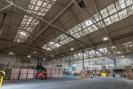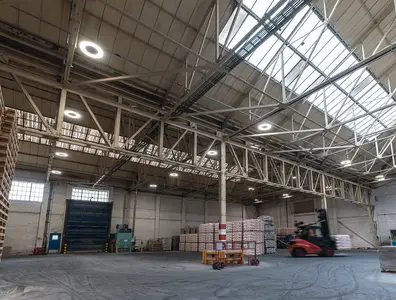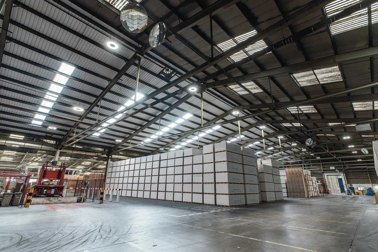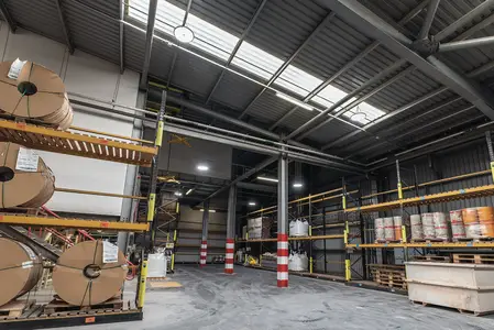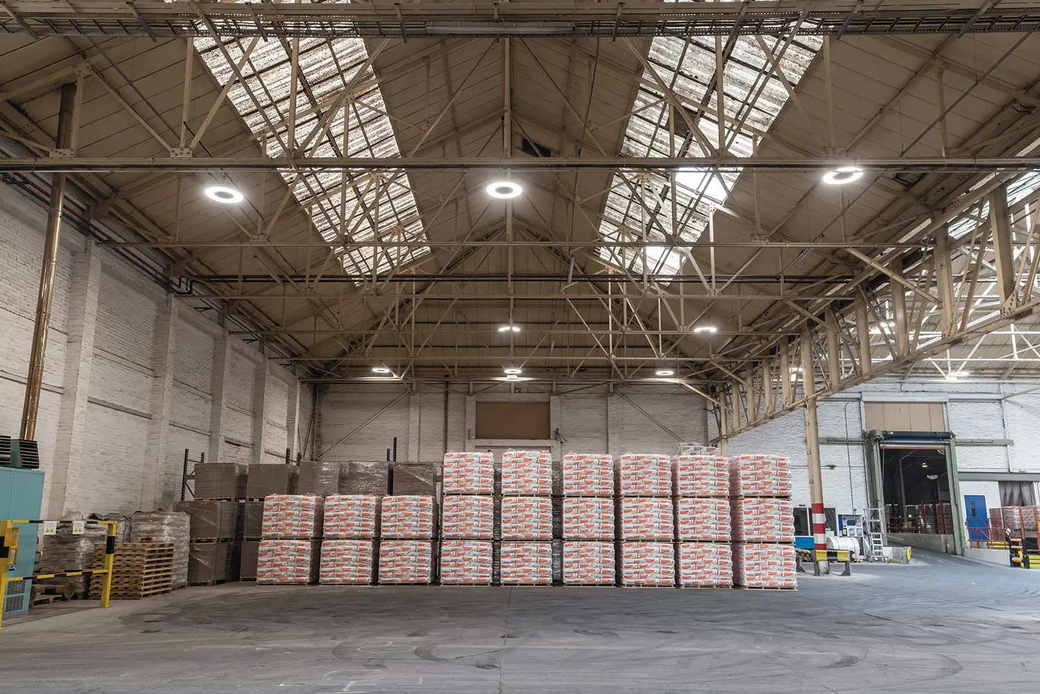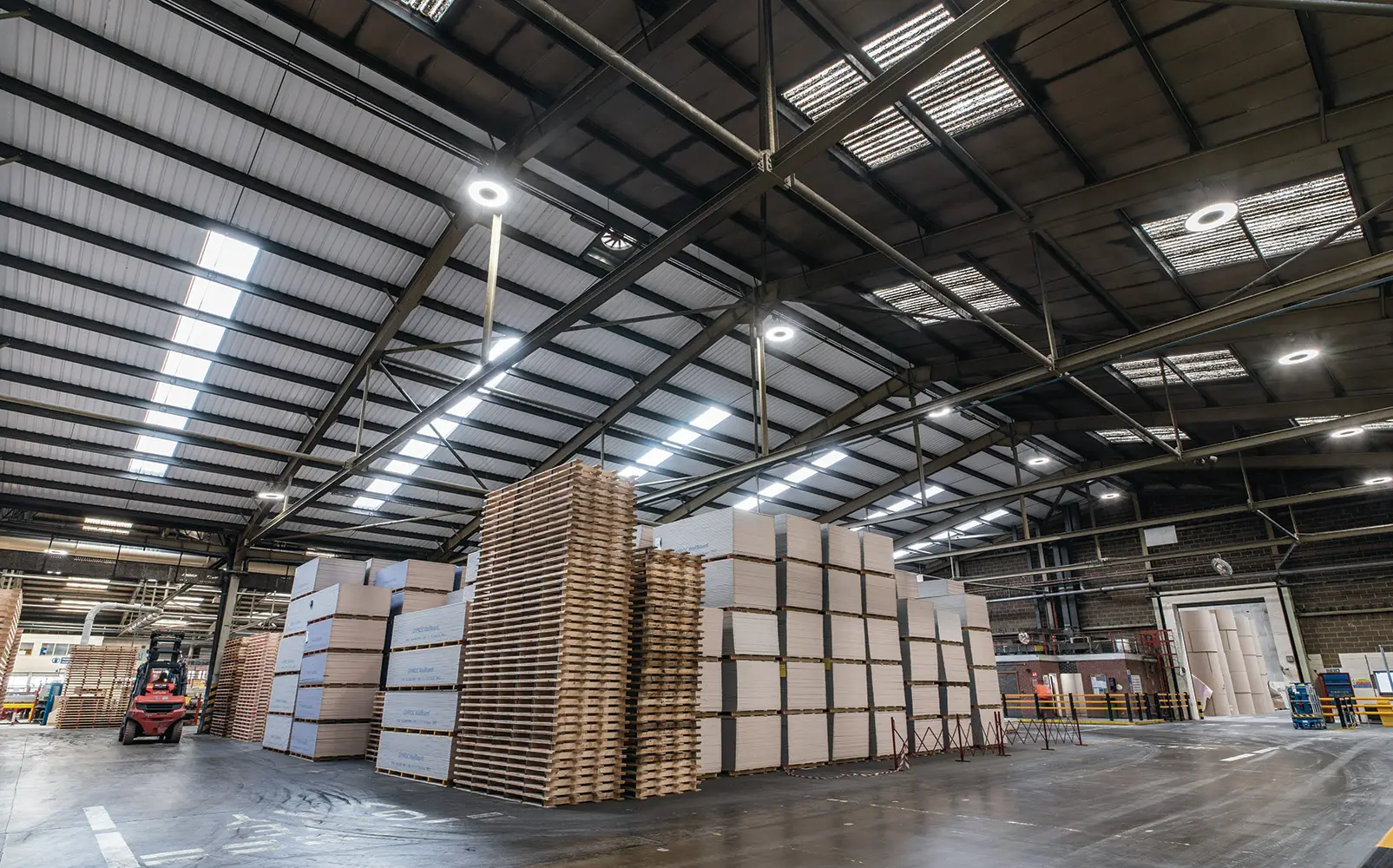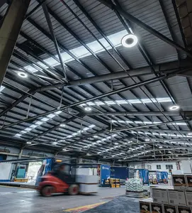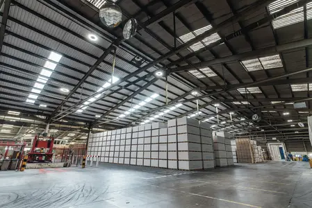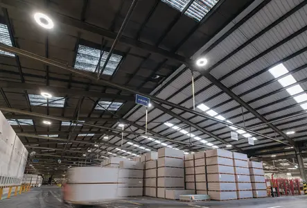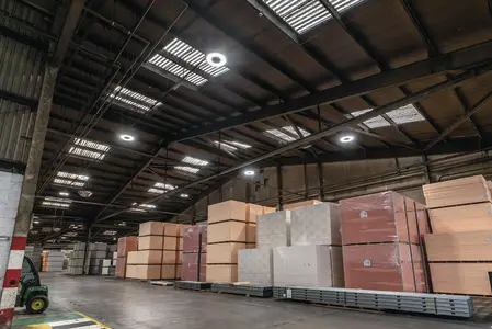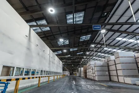 Comboseal and Solow LED luminaires combined with the SmartScan wireless lighting managment system were chosen for the manufacturing areas at British Gypsum. The Comboseal range of low profile, high efficiency, IP66 circular LED luminaires for high and low bay applications are designed to be used as direct replacements for traditional single point suspended discharge luminaires up to 400W.
