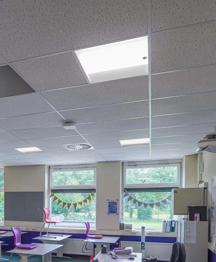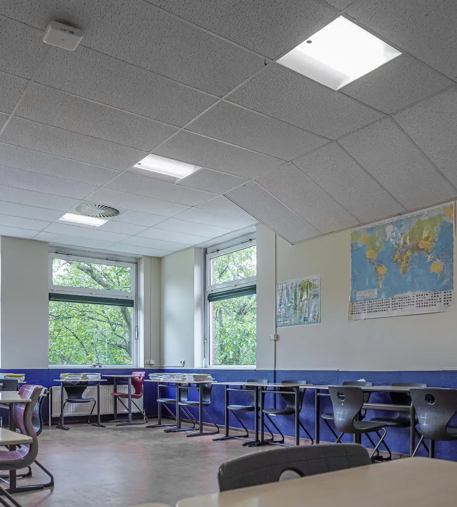 Replacing fluorescent lights with LEDs in combination with the SmartScan system has resulted in significant energy savings. Thorlux Lighting's SmartScan is a revolutionary wireless lighting control system that allows users to monitor energy consumption and the system's full operational status. SmartScan sensors detect the presence or absence of occupants and the level of natural daylight entering the space. When daylight is abundant, the lights automatically dim. On a sunny day, luminaires near windows will barely illuminate while those further inside the room will, resulting in consistent room lighting while maximising energy savings. This feature helps the school, where large windows allow plenty of natural light into the building. SmartScan also enables the programming of preset lighting scenes. These controls ensure the desired lighting at any time of the day. Every classroom has a discreet SmartScan scene plate, allowing teachers to adjust the lighting to suit the needs of the lesson.