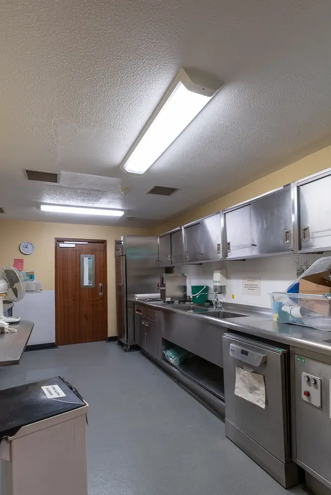 The Arcadian luminaire has been installed in a number of rooms within the unit. The Arcadian range has been developed to satisfy the need for an extremely impact and tamper resistant low glare LED luminaire for general lighting in circulation spaces, corridors and stairwells. The domestic impression of the Arcadian makes it an ideal choice for modern health care projects, where it can help to provide a welcoming and comforting ambience.