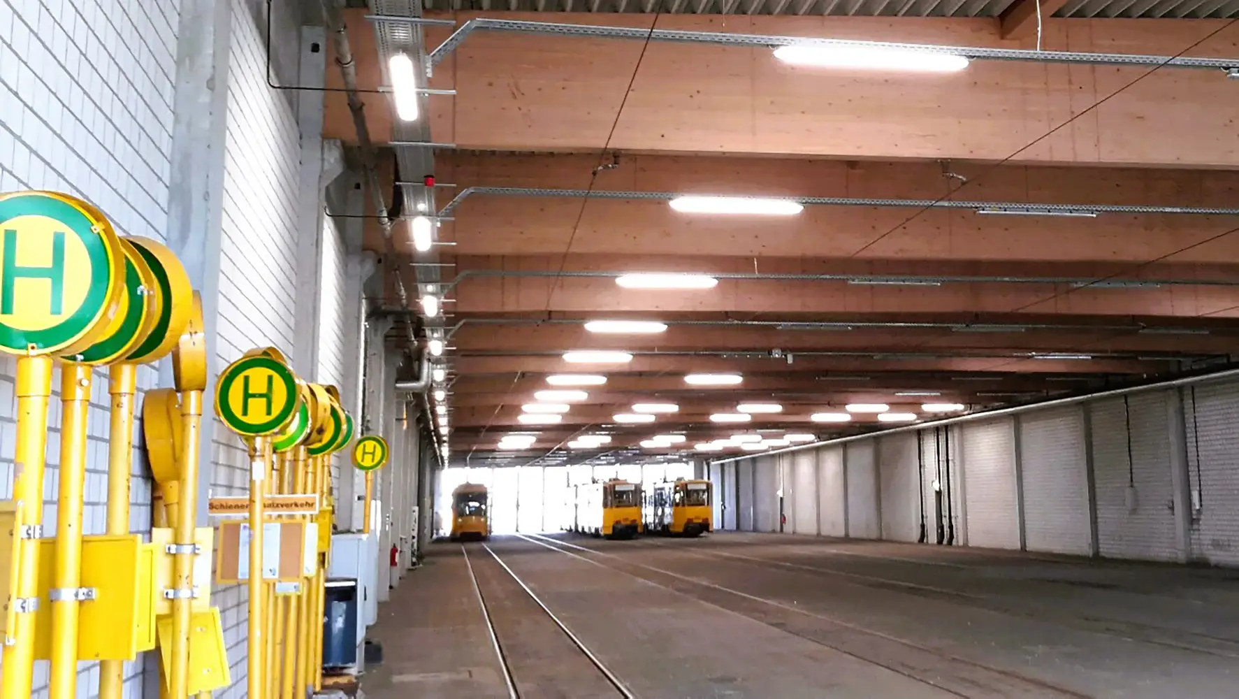 GVB opted for state-of-the-art LED luminaires and the SmartScan lighting management system from Thorlux, working with Thorlux's German subsidiary SchahlLED Lighting. SchahlLED Lighting removed the old T8 luminaires from the two 120-metre-long depot halls (an area of almost 8,000 square metres) and the adjacent workshop. The old lights were replaced on a 1:1 basis with 467 standard and emergency Thorlux luminaires. Products used included Thoroproof linear and the Firefly emergency luminaire.