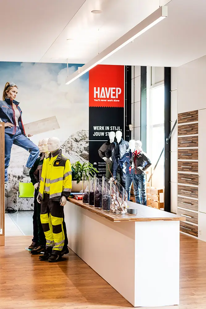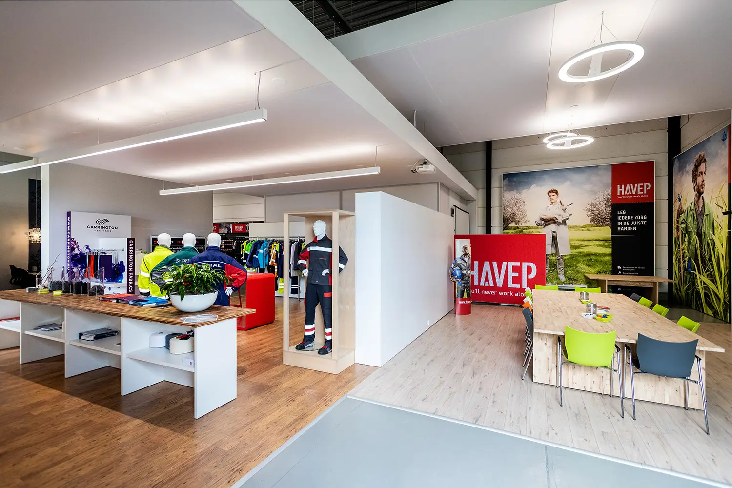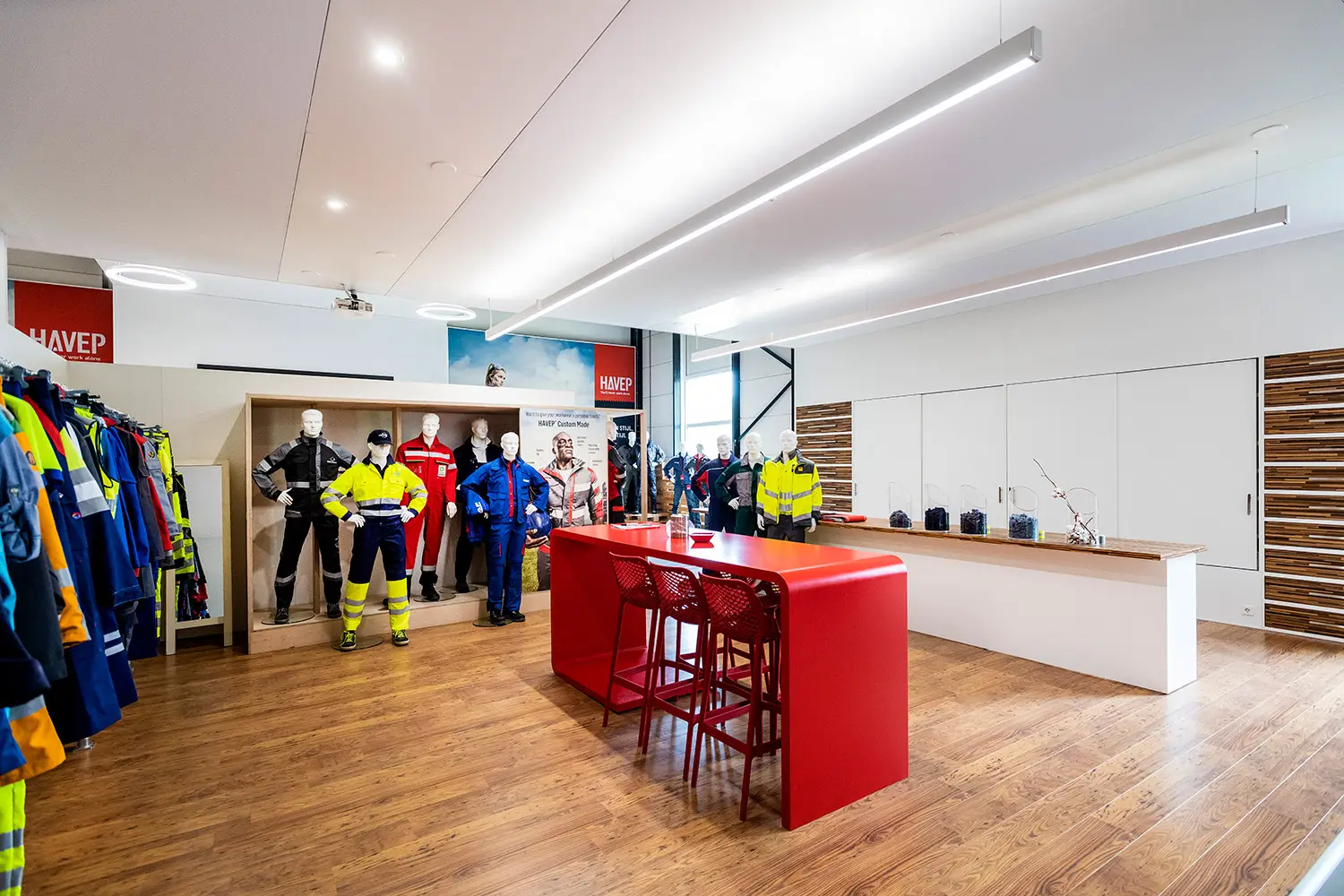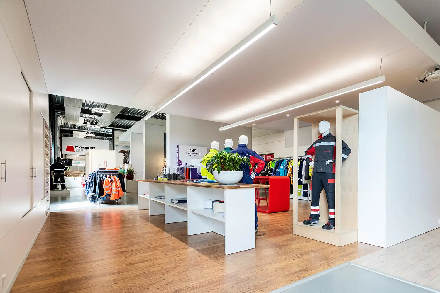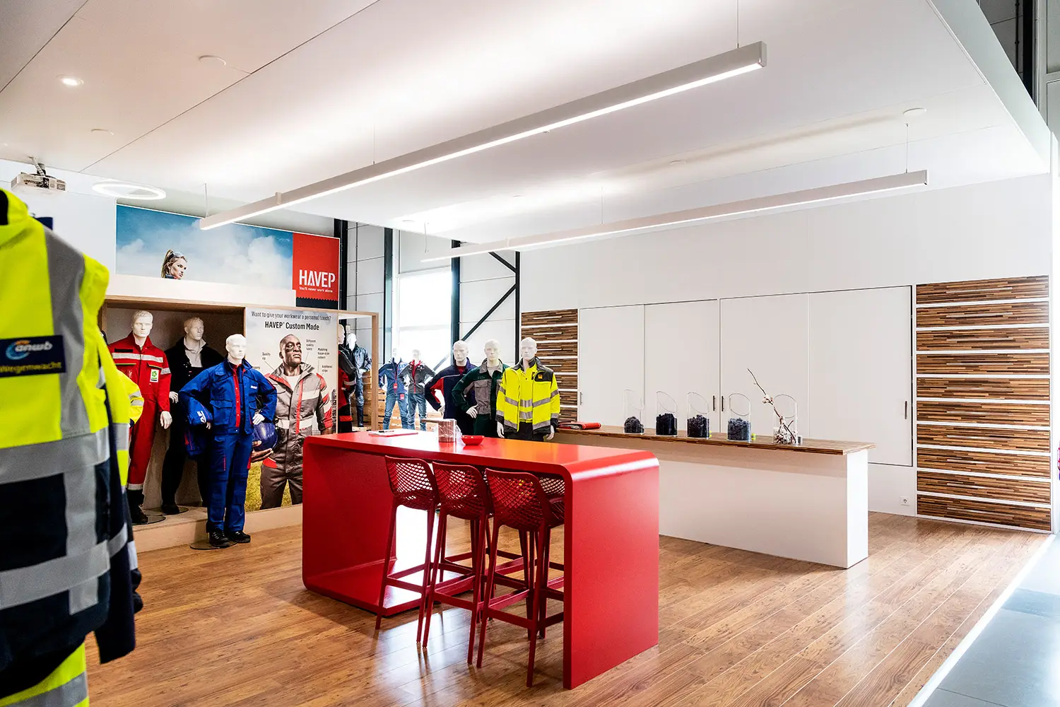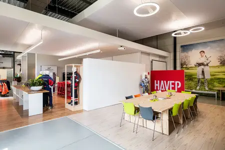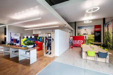 Havep design and manufacture workwear and protective clothing. The Havep Texperience Centre is an interactive and multifunctional space where visitors have the opportunity to learn about textiles and haberdashery. The Centre is part of the IKARES project (Intelligent Low Carbon Energy Systems). Partners in IKARES, Lightronics and Global Innovator, aim to make lighting more intelligent and to interconnect it in a network with users and the environment.