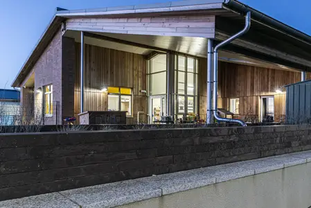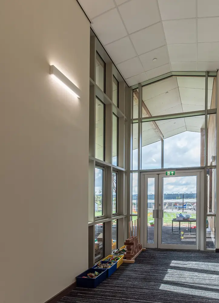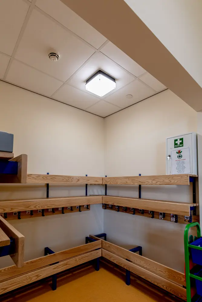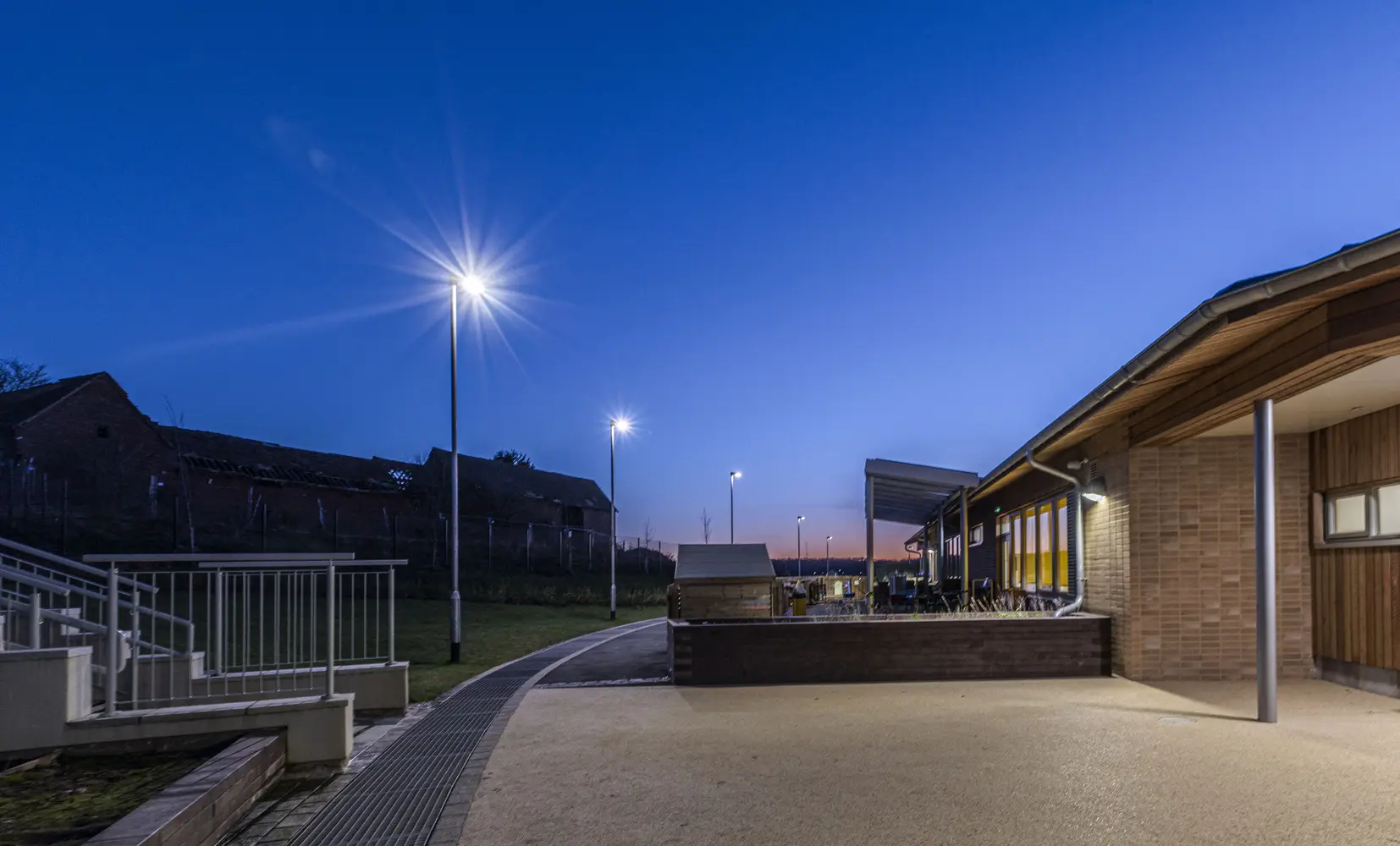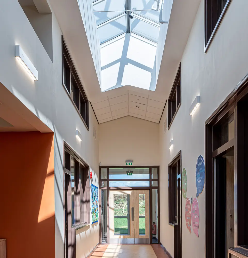 Work on the new 2,000 m² school building began in early 2020. The single-storey, timber-framed construction was designed to achieve a ‘very good’ BREEAM sustainability rating with a bright, modern educational aesthetic. To this end, based on its decades of experience in the educational sector and its environmental credentials, Thorlux was appointed as lighting supplier. The lighting objective was to provide a system of internal and external luminaires that complemented the open, modern design of the new building, whilst providing optimal levels of energy efficiency.