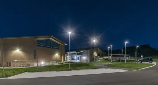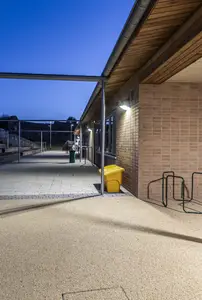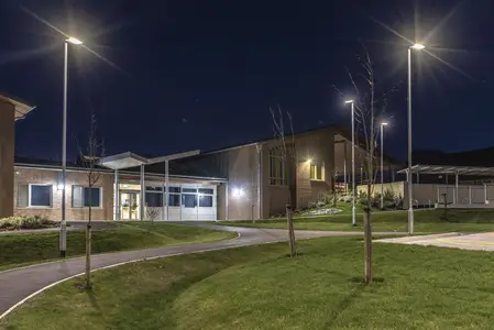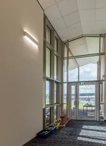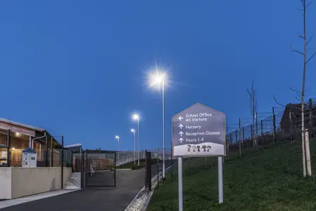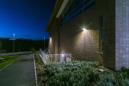 The building interior uses a varied selection of Thorlux luminaires throughout. This includes over one hundred each of Kanby Zip and Zipline luminaires. Other luminaires include Hi-Style, Solow LED, Cleanline and Firefly. To provide clear and concise emergency exit signage, Lex maintained exit signs with AutoTest facility have been installed across the school. The lighting scheme for the building’s exterior includes Realta, Mercian and Cobalt luminaires. Starbeam ECO pole-top floodlights are utilised to provide illumination of outdoor play and parking areas.