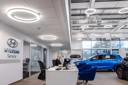 Hutchings are celebrating over 50 years as a main dealer in the motor trade. The company’s new state-of-the-art Hyundai showroom opened in Swansea in 2017 and is lit with a selection of Thorlux LED luminaires in both the showroom and back of house areas.