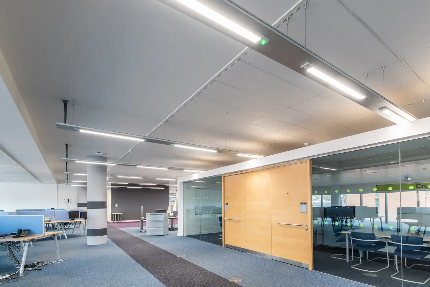 The addition of the SmartScan wireless lighting management system ensures that the new installation combines the necessary energy savings with an improved quality of lighting throughout the building. Integral Smart sensors monitor ambient light and presence, control output to the correct level, dim and switch when there is sufficient daylight and illuminate only when the area is occupied.
