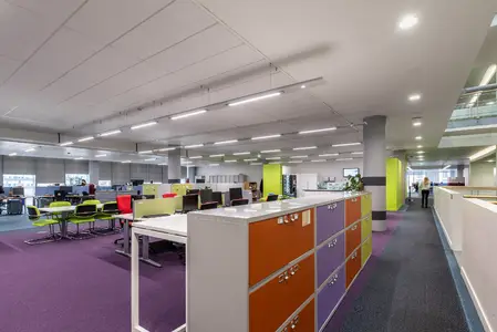 The original lighting at Loxley House consisted of standard T5 and compact fluorescent luminaires and an outdated control system. The client approached Thorlux to upgrade all the non-LED lighting with energy efficient LED alternatives including a smart control system with daylight and occupancy sensors integrated into the building's BMS (building management system) and a fully automated emergency lighting testing system.