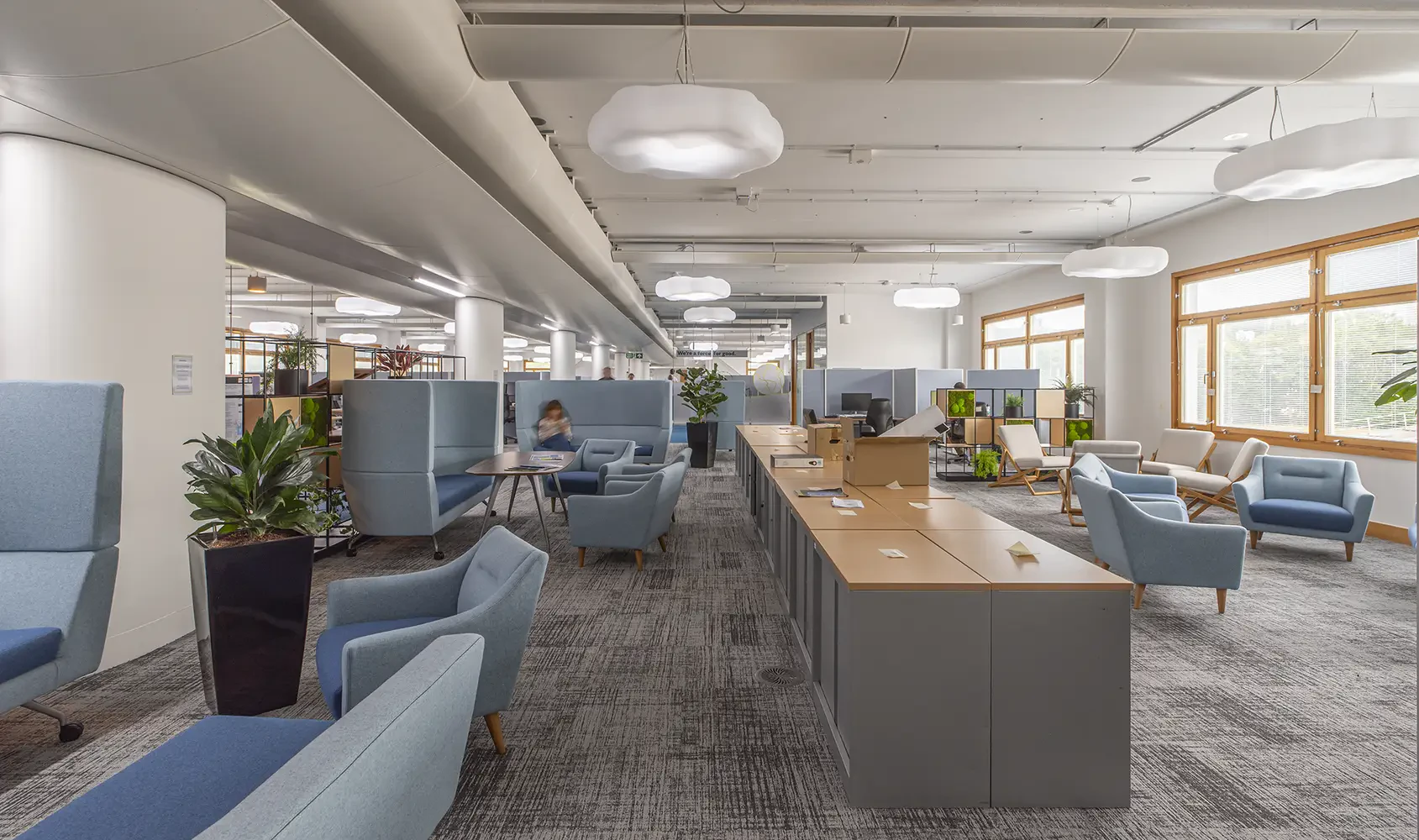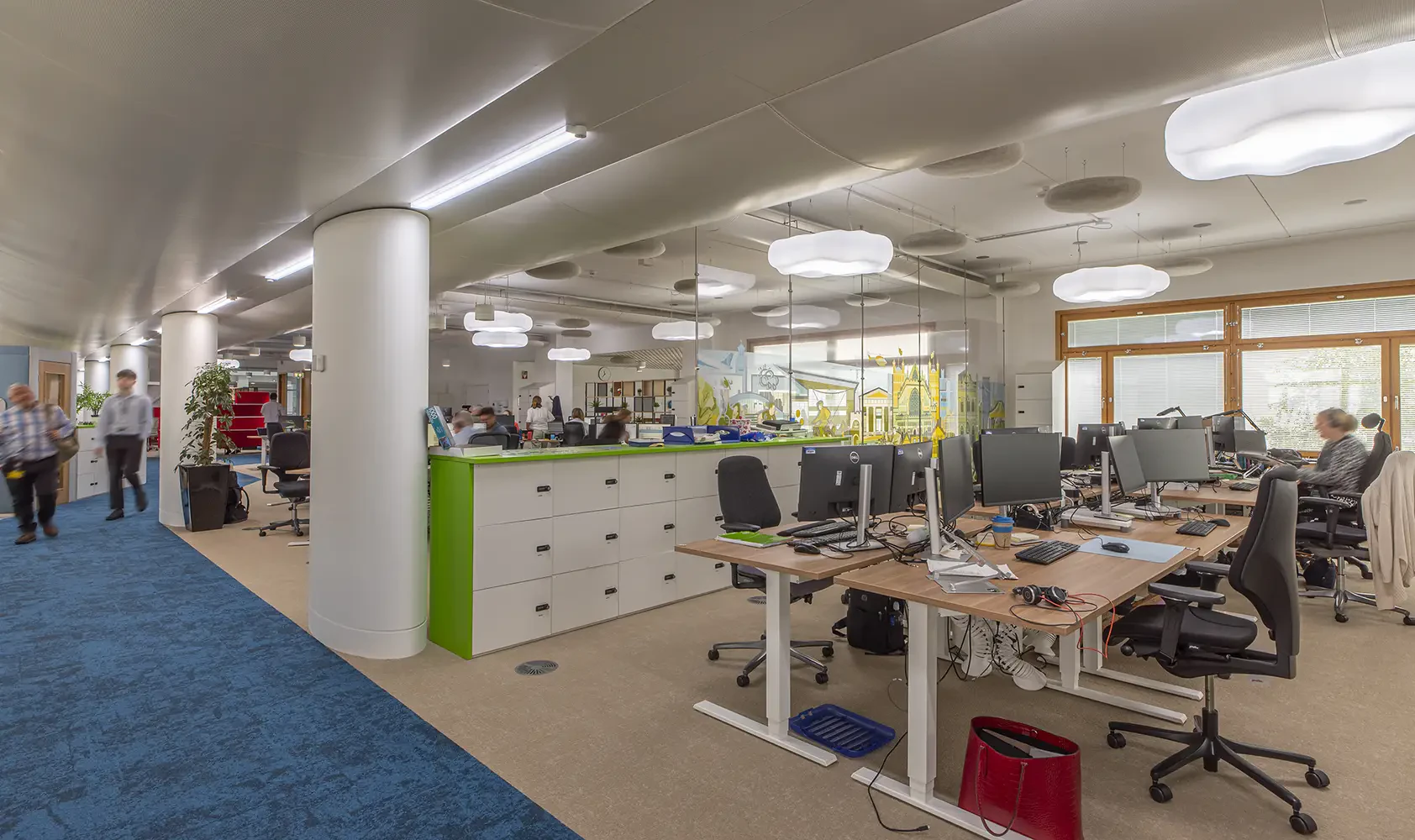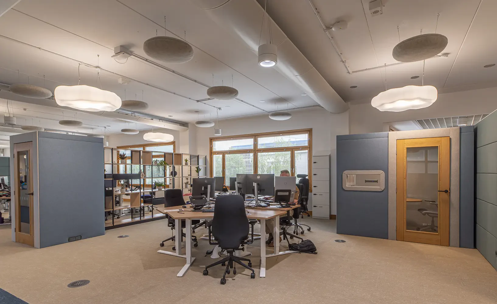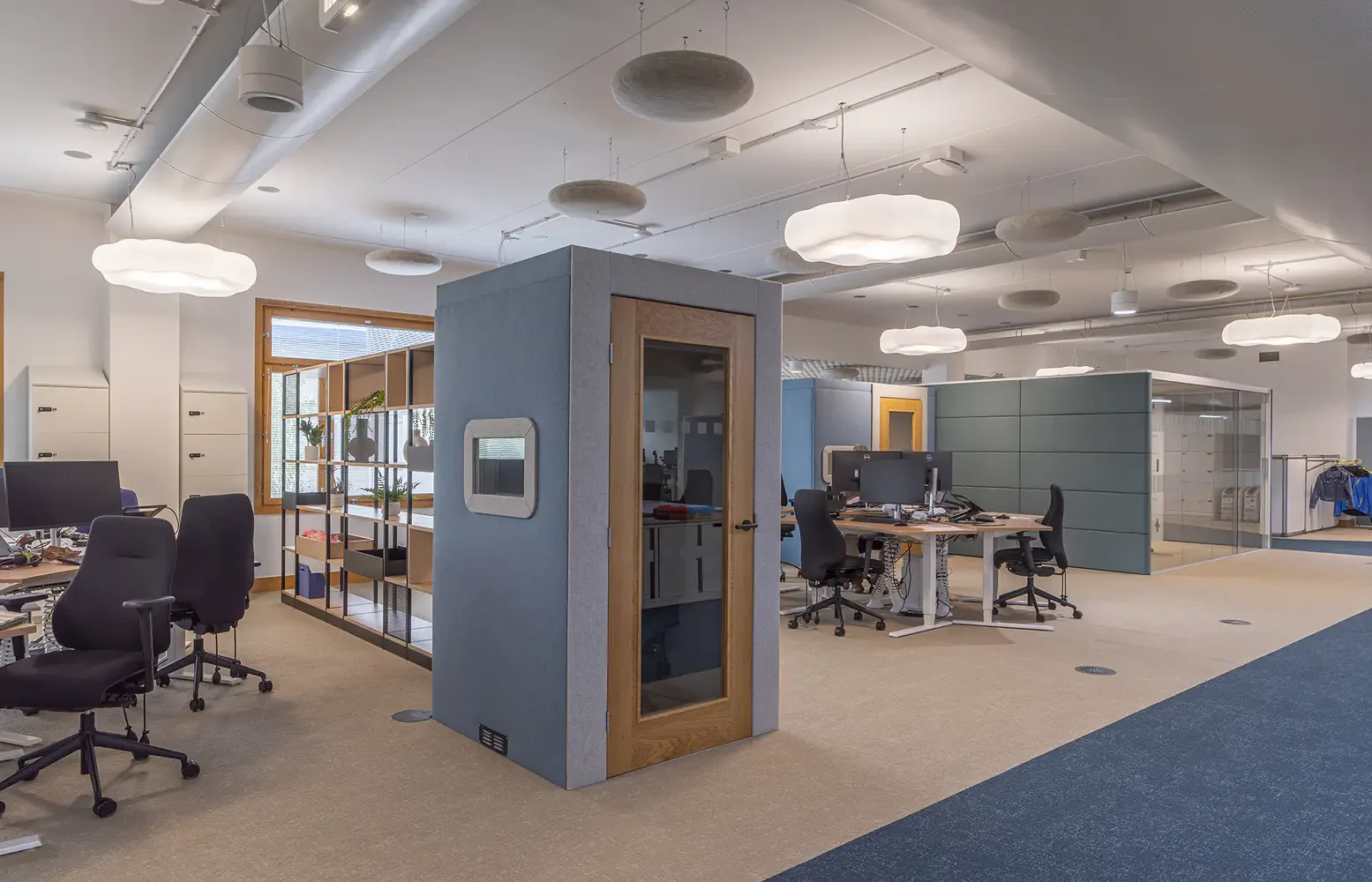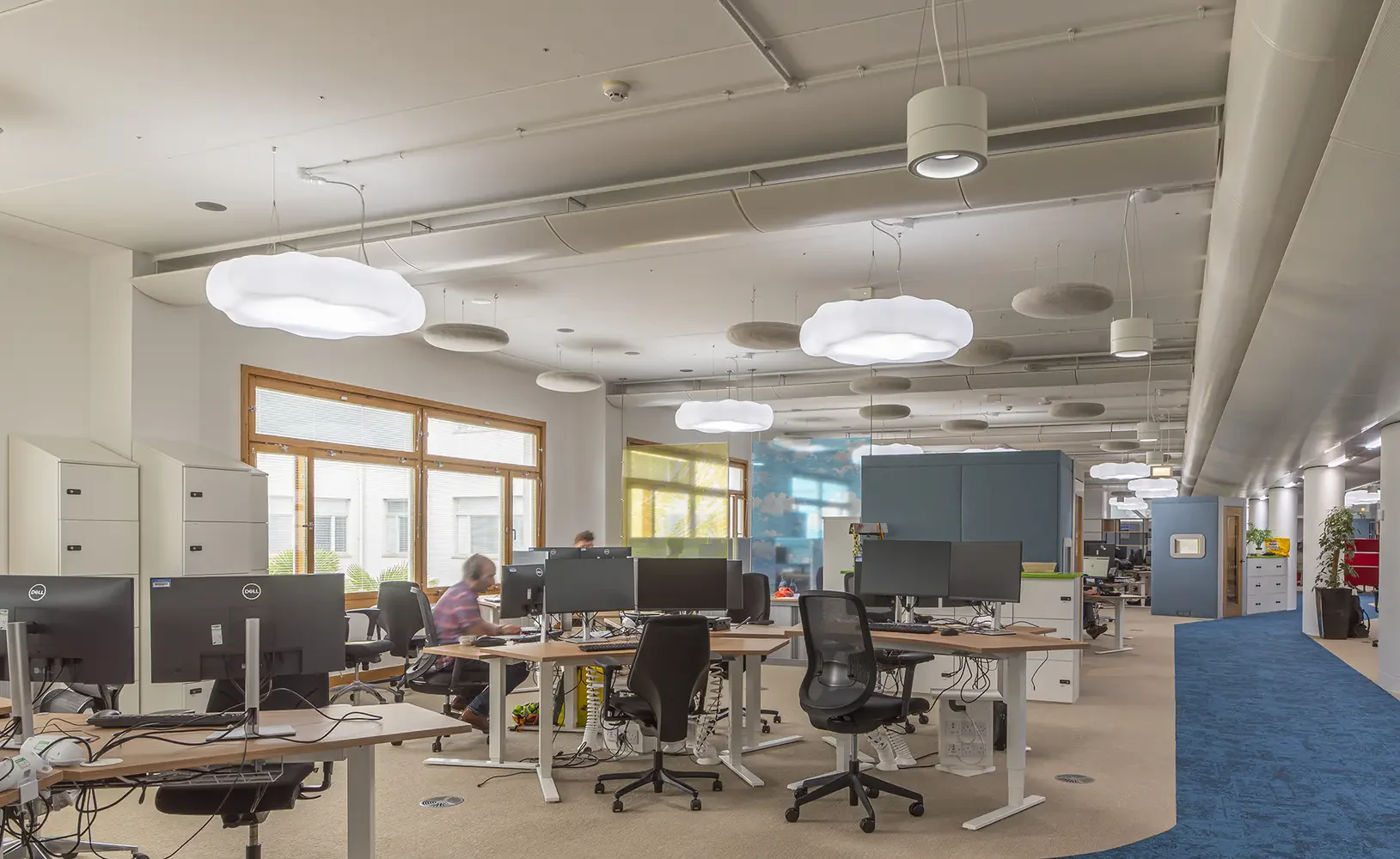 Thorlux Lighting has specified and supplied a SmartScan-controlled lighting system in the Met Office restaurant area. Thorlux Cloud suspended luminaires, coupled with edge-lit Flexview ‘skylight’ recessed picture luminaires, provide an inspirational, light-hearted connection to the Met Office’s weather-forecasting duties. The Cloud luminaires’ ColourActive technology provides automated colour temperature control, configured via the SmartScan website, with preset modes that mimic natural daylight patterns or can be customised as needed. The luminaires connect wirelessly to a ColourActive Gateway, which updates them every few minutes to ensure smooth and consistent lighting transitions during the day. The restaurant lighting scheme also features linear Flexline luminaires and G3 recessed downlighters.