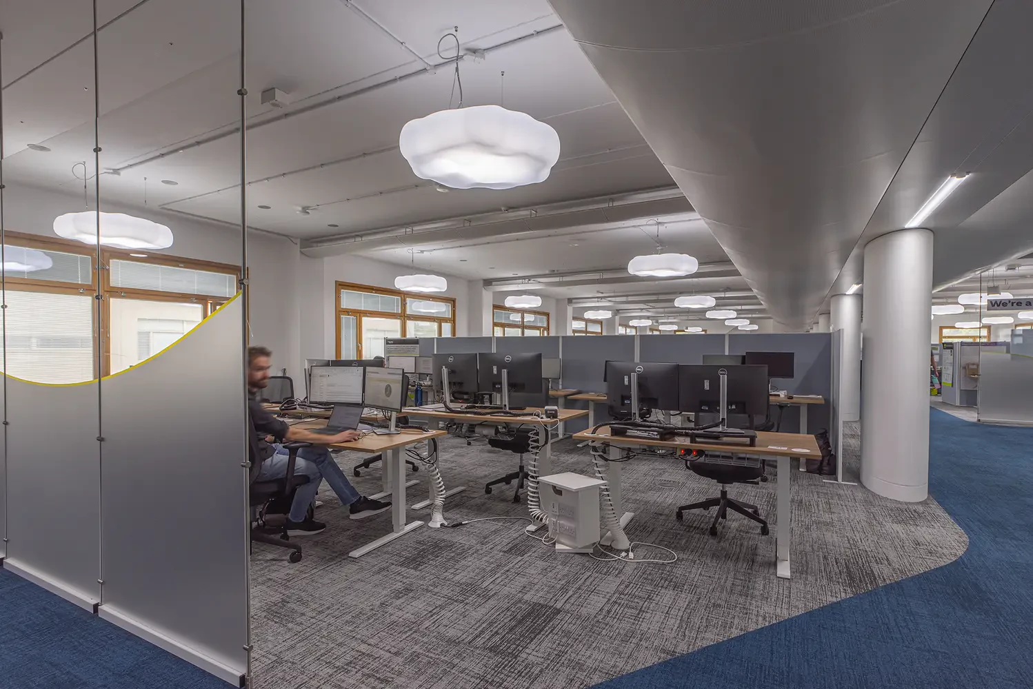 Within the office spaces, Thorlux luminaires provide functional work lighting, complemented by the continued aesthetic use of Cloud luminaires. These luminaires also feature ColourActive technology, which automatically adjusts colour temperature throughout the day. Lexi illuminated exit signs are mounted throughout the area to ensure safety compliance.