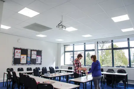A £5.8m investment has seen the college transformed with the addition of a contemporary new glass building that will house a science and technology centre, a new collections house, teaching rooms, project spaces and a library.
