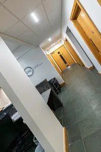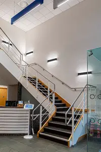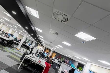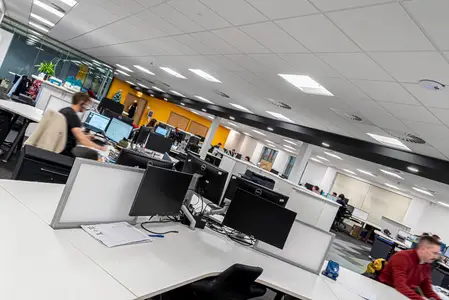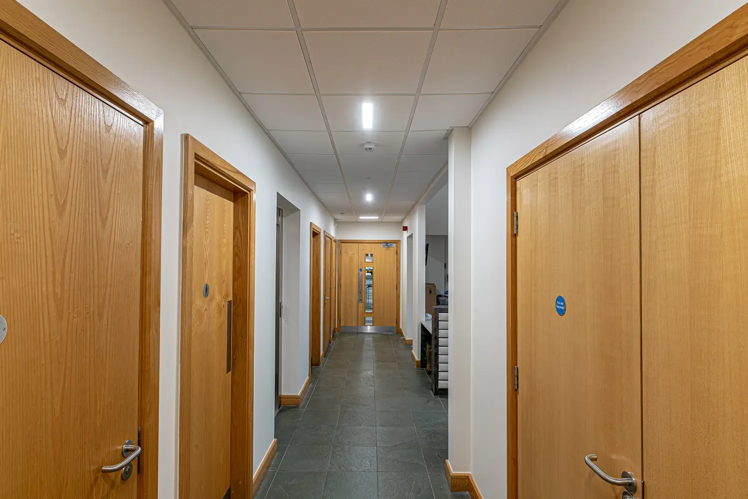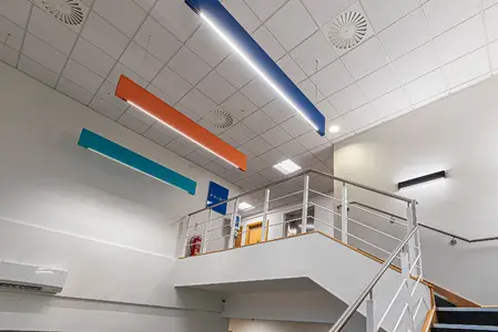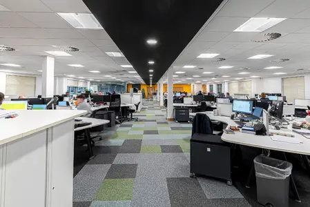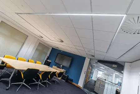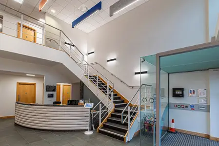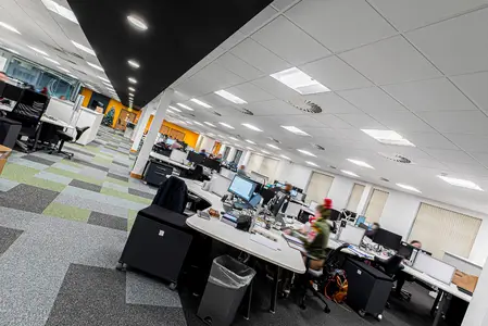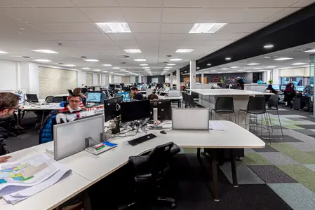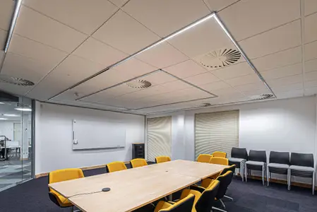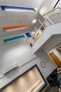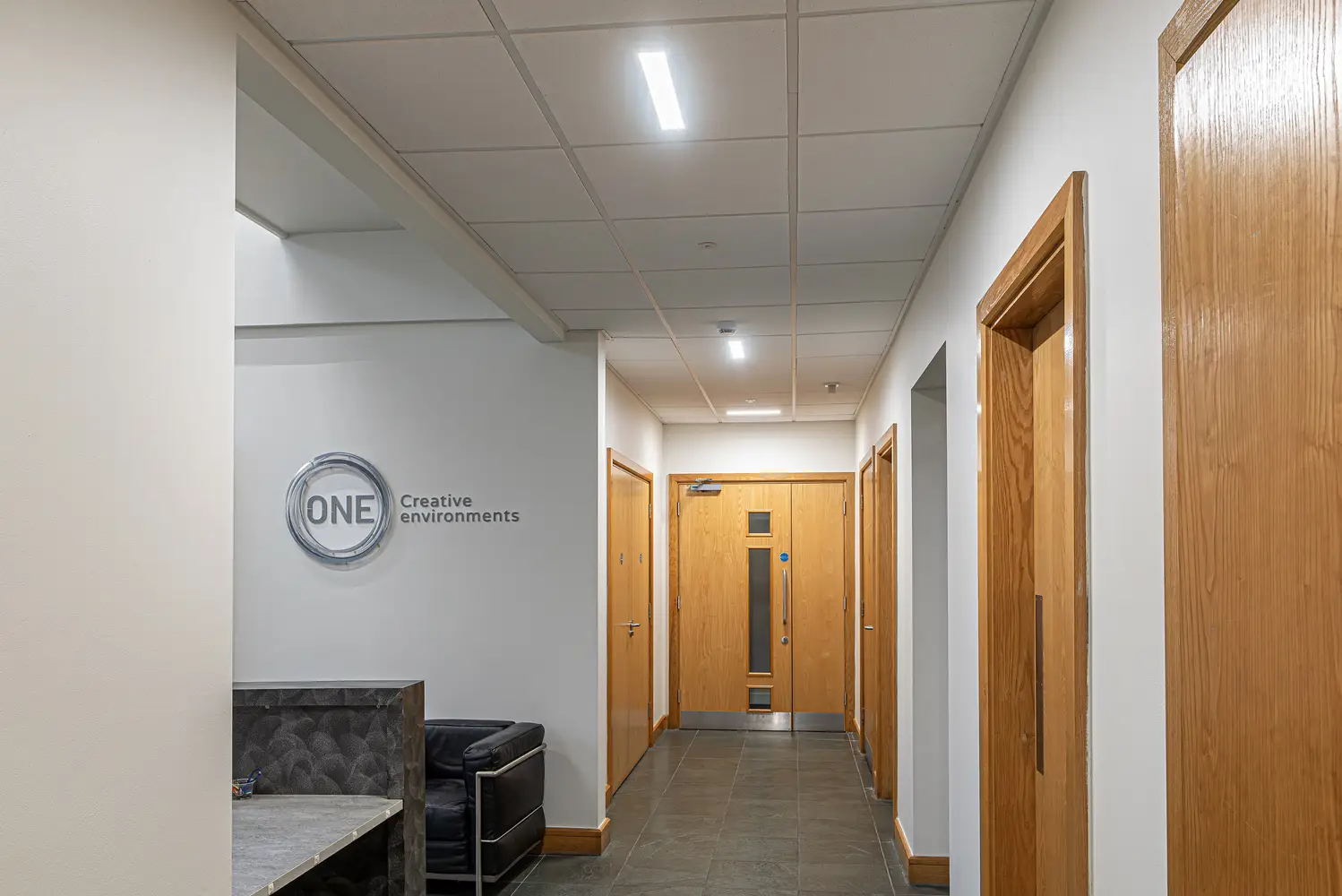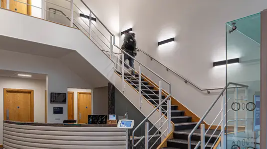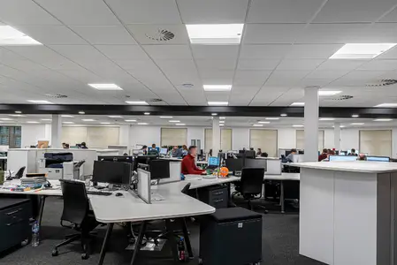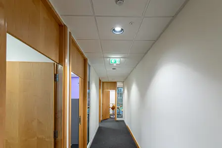 Thorlux Lighting was engaged to supply high-efficiency LED luminaires and self-test emergency lighting. Using Platform 1 of the SmartScan lighting management system, the luminaires operate on a stand-alone basis, wirelessly linked in groups for presence detection and scene setting. The renovation uses Hi-Style recessed luminaires throughout the open-plan offices, with Flexbeam suspended acoustic fittings and Kast wall-mounted luminaires used to striking effect in the reception area.