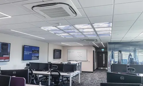 Remark is a specialist provider and integrator of network infrastructure, electrical and audio visual communication solutions. Working closely with Remark, Thorlux Lighting proposed a new installation that would combine the necessary energy savings with an improved quality of lighting throughout the building. This recommendation was based on installing the Thorlux SmartScan lighting management system which incorporates Smart intelligent lighting control. Integral Smart sensors monitor ambient light and presence, control output to the correct level, dim and switch when there is sufficient daylight and illuminate only when the area is occupied. . Projects utilising the Thorlux SmartScan System can frequently benefit from energy savings in excess of 70% when compared with conventional technology.