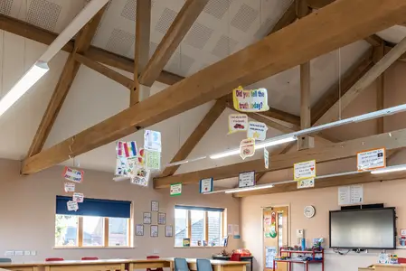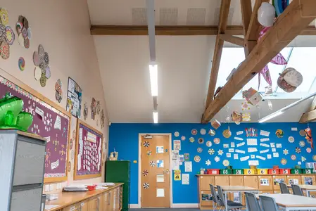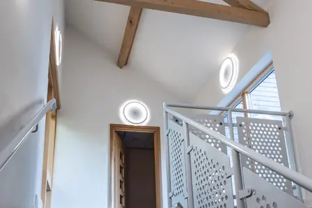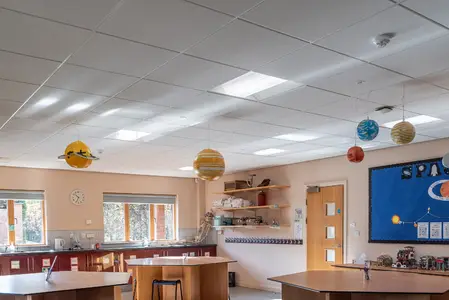LED Kanby Zip SmartScan luminaires in the upstairs tutoring rooms provide a bright and stimulating learning environment, with light levels of between 300 and 500 lux depending on the room’s usage. Office spaces are equipped with Hi-Style LEDs; storerooms with Glodome luminaires; the lobby area and corridors with wall-mounted Ovix luminaires. Firefly emergency downlighters are used to provide emergency lighting. Finally, Flexbar suspended luminaires, wall-mounted Ovix and R3 LED opal downlights illuminate the 9m-high main hall.