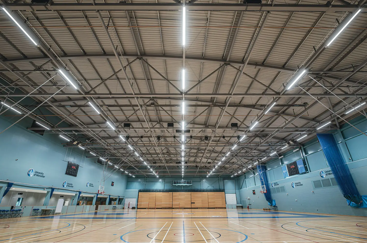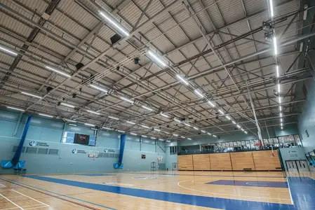 The Arena has been illuminated using Thorlux Solow LED luminaires. The Solow LED has been designed to provide low through life cost by keeping energy and maintenance costs to a minimum. The body is constructed of silver anodised extruded aluminium and is available with narrow and broad distribution options using high performance diffusers and a high efficiency light chamber.