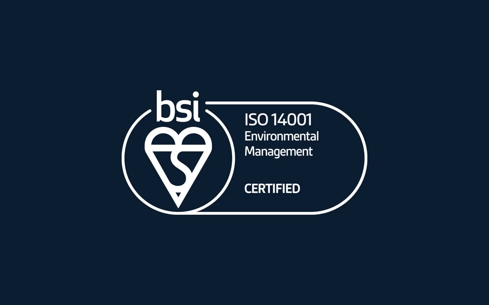 Independently inspected and certified to ISO 14001:2004 by the British Standard Institute.