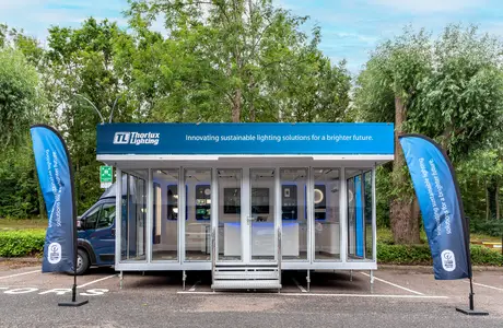 The new Thorlux Mobile Experience (TME) is travelling the UK demonstrating the latest Thorlux products and technologies. The TME is an interactive ‘on-the-road’ exhibition space packed with the company’s most innovative lighting solutions.