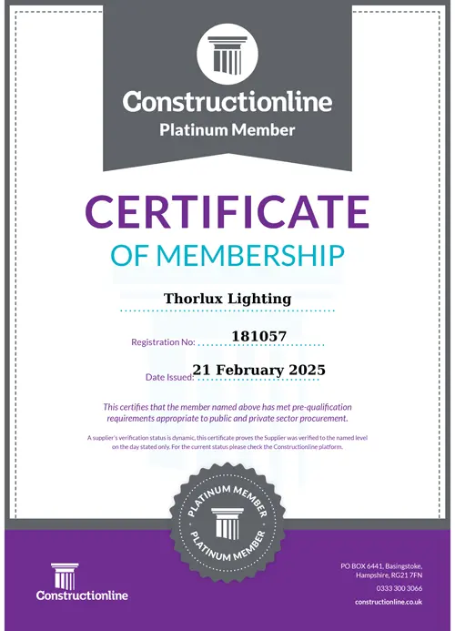 Declarations of Conformity are available that state Thorlux has tested its luminaires to comply with the relevant international standards for manufacturing luminaires and related products.